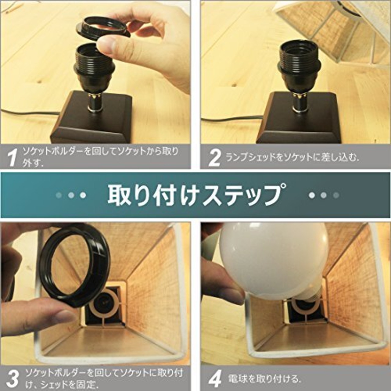 【取り付け簡単】取り付け簡単です、4ステップだけすぐに完成できます。電源のON/OFFは操作が簡単の中間スイッチ式です。電源コード長:約1.65m(本体とスイッチ間約0.30m) ピント1:AC100Vの電源を使用してください。ピント2.電球別売、ご承知ください。