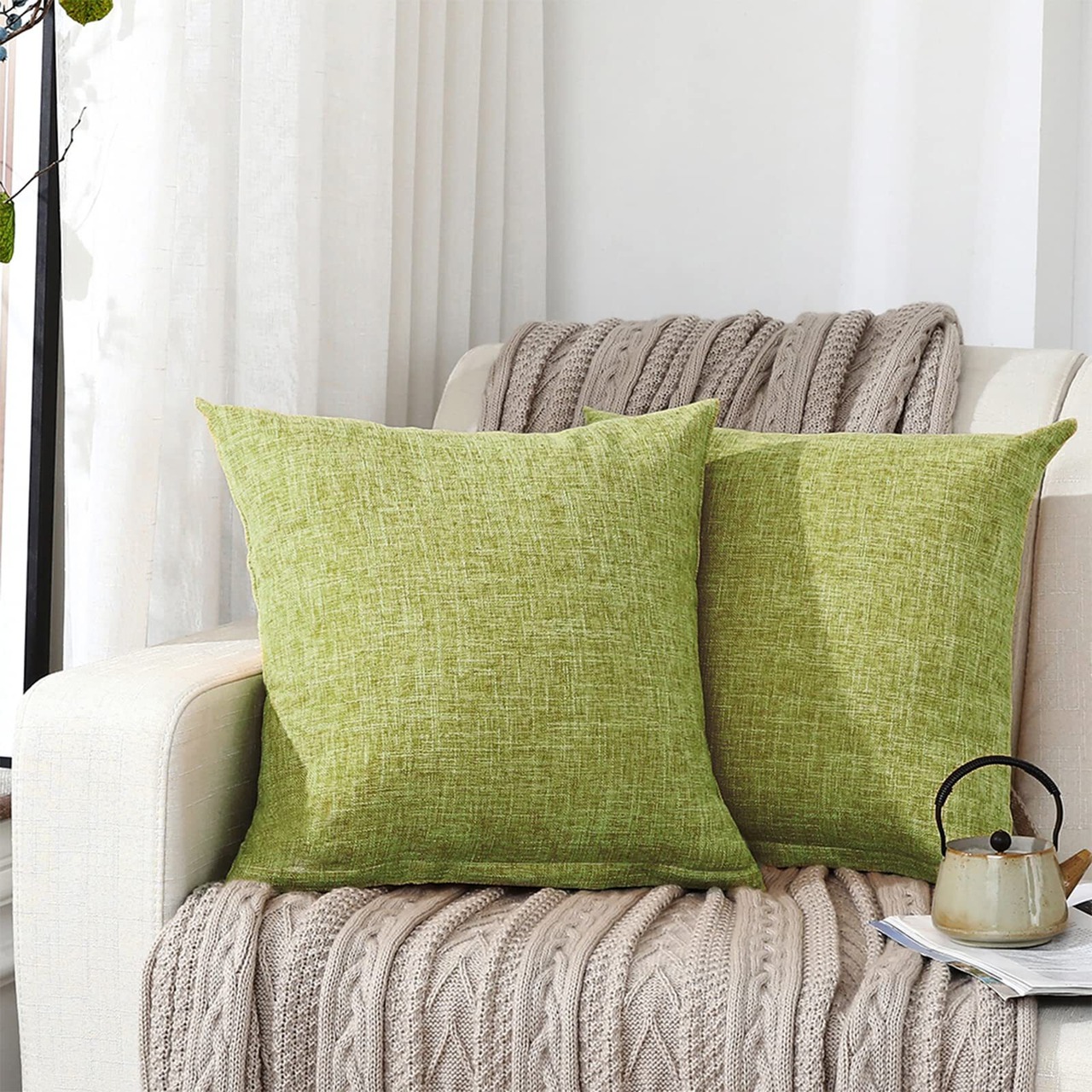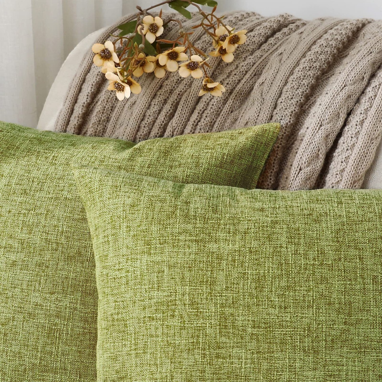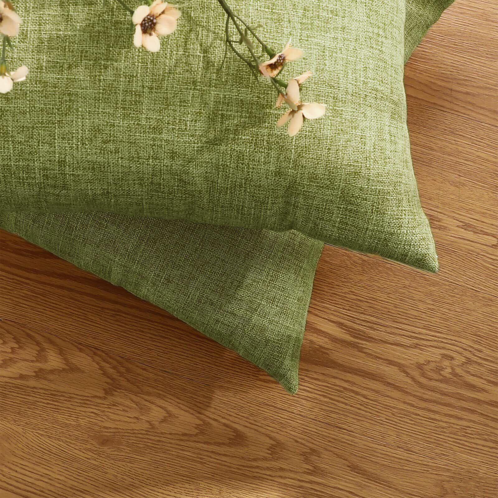 クッションカバー 45x45cm 北欧 おしゃれ ソファ背当て リネンの質感 座布団カバ ー 無地 隠しジッパー装飾枕カバ ー グリーン 2枚セット