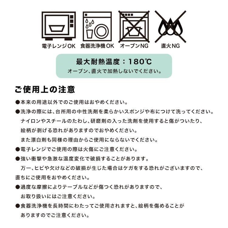 電子レンジや食器洗浄機でご使用いただけます。 ※最大耐熱温度:180℃ ※オーブン・直火NG