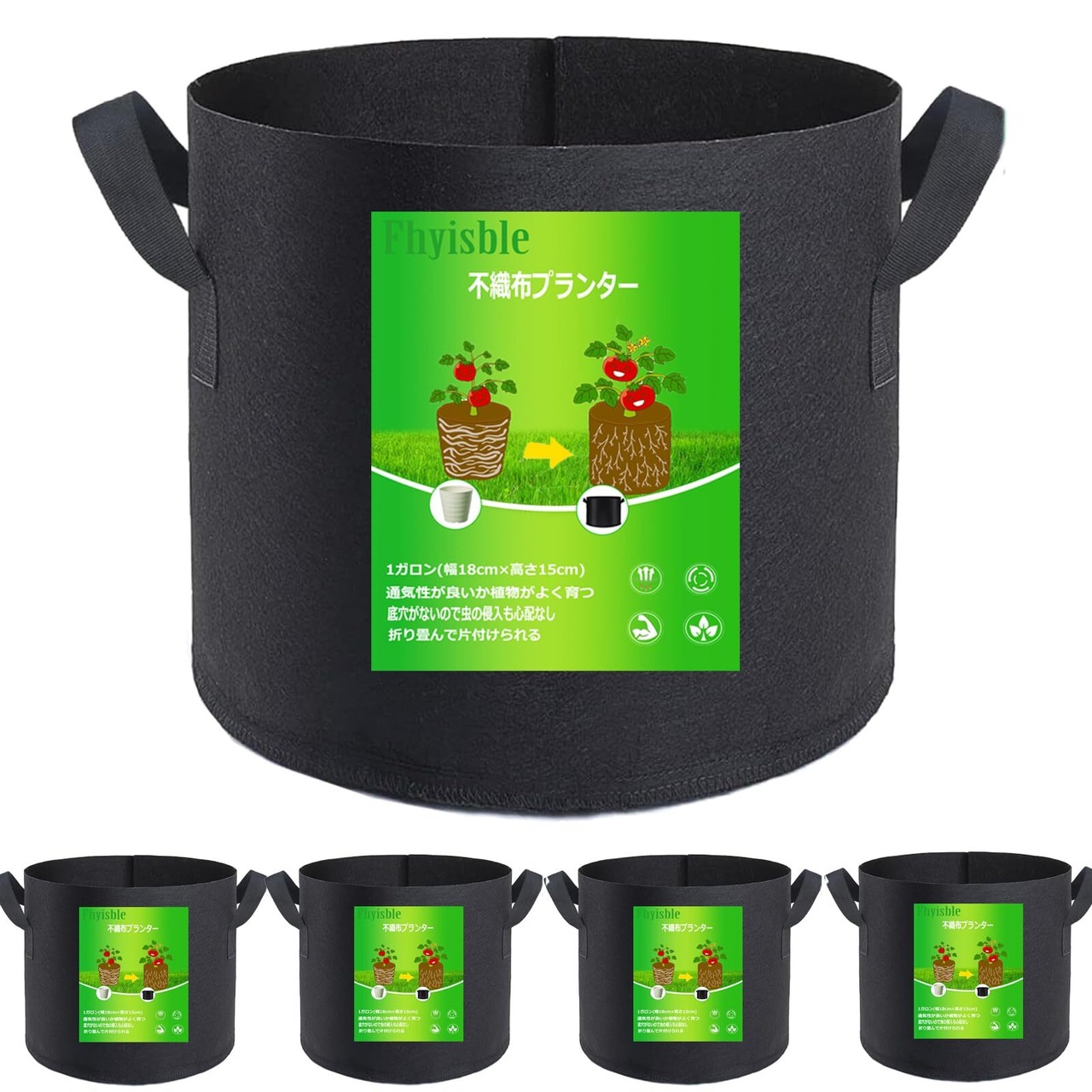不織布プランター 栽培袋 布鉢 植木鉢 不織布ポット 1ガロン5枚入 幅18cm×高さ15cm 6号鉢 3.8リットル 軽い 家庭菜園 野菜 栽培袋 布袋 布鉢 (1ガロン5枚入)