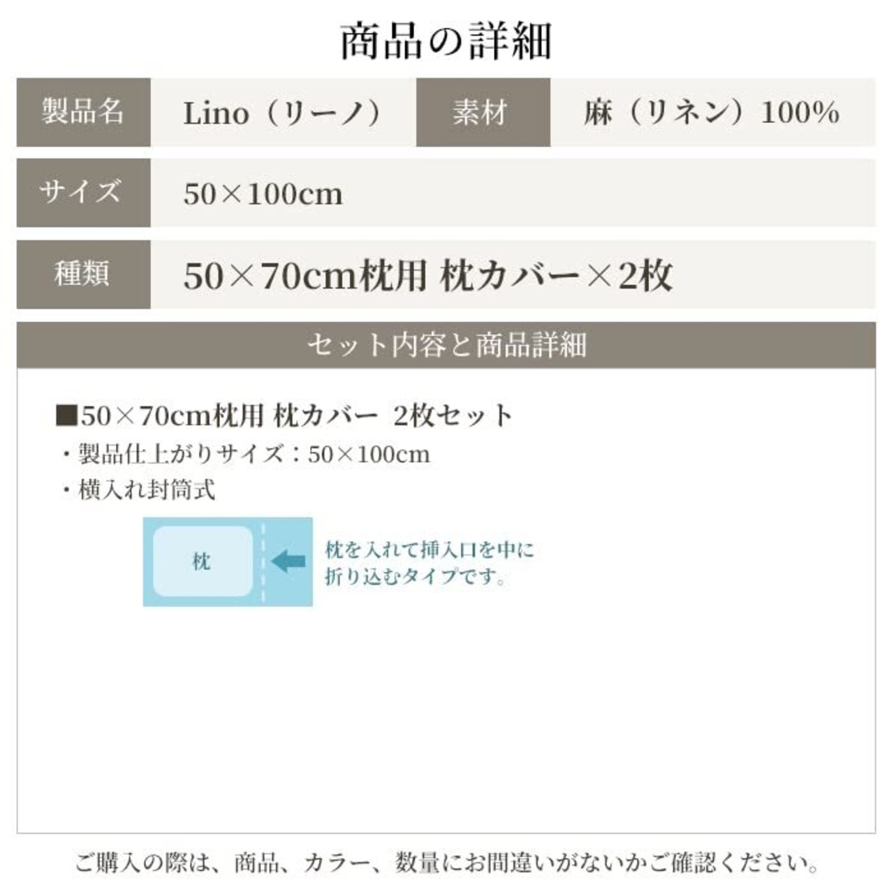 【サイズ】 ピロケース/枕カバー 50x70cm枕用 2枚組 (仕上りサイズ50x100cm) 【仕様】 横入れ封筒式 入れ口:三巻ステッチ 余った部分を中に折り込んで使用するタイプです。