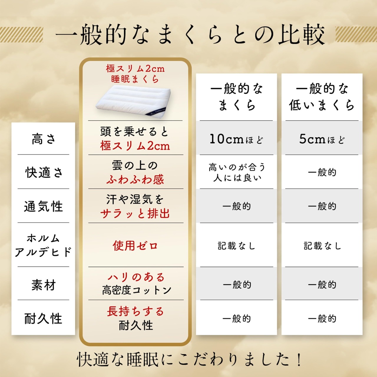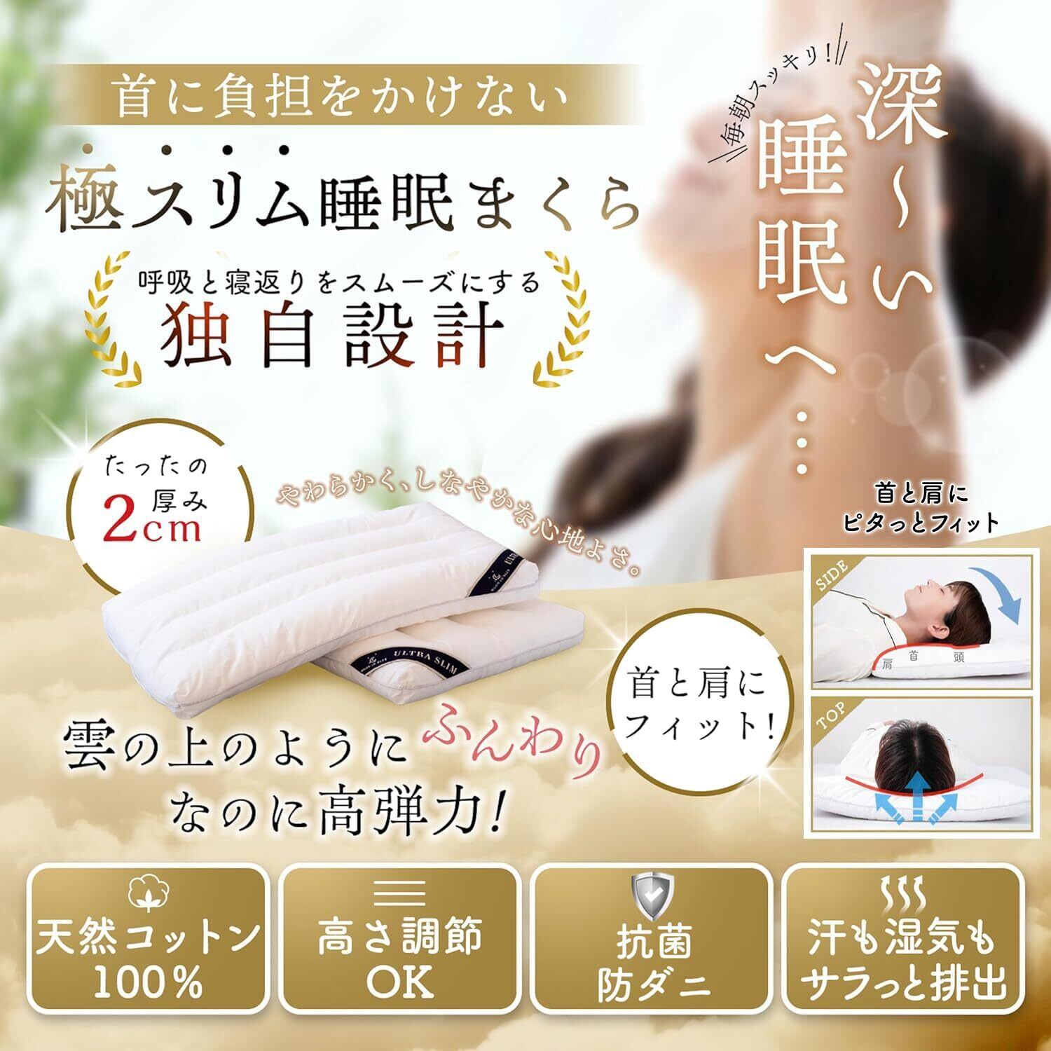 【新春セール】極スリム2cm 睡眠まくら ”低さ”と”寝心地”を追求 首や肩の負担を減らす 枕 低め 低い枕 薄い枕 薄い 洗える 第三者機関で洗濯テスト済み 整体師が推薦 柔らかい枕 通気性 高さ調整 天然コットン (40×60cm/極スリム2cm) | ニコニコSHOP