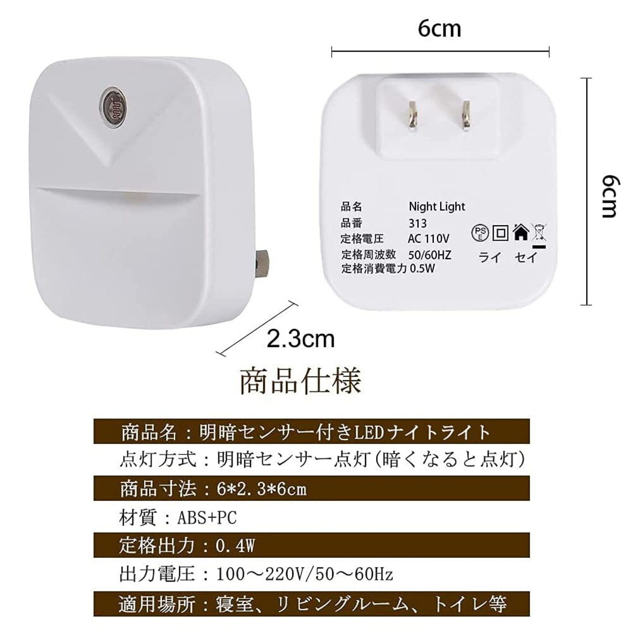 【プラグイン式】本商品はコンセントに差し込むだけの簡単設置、暗闇の中で昼色光を楽しむことができます。電池不要、エネルギー消費量はわずか0.4W、30日間点灯でも電気代はたったの約1円です。コンパクトのデザインはどこでも設置できます。