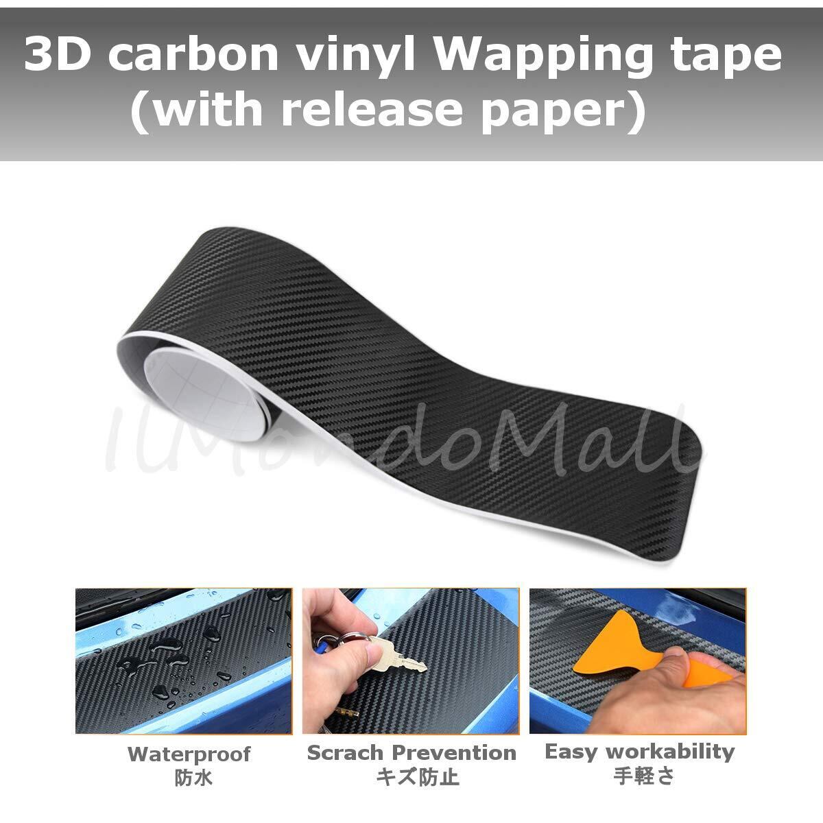 Ilmondomall テープ式 リアルカーボンシート 3D柄 ブラック ステップ バンパー 保護 レーシングストライプ 剥離紙有り (3Dブラック, 1cm×6.5m)