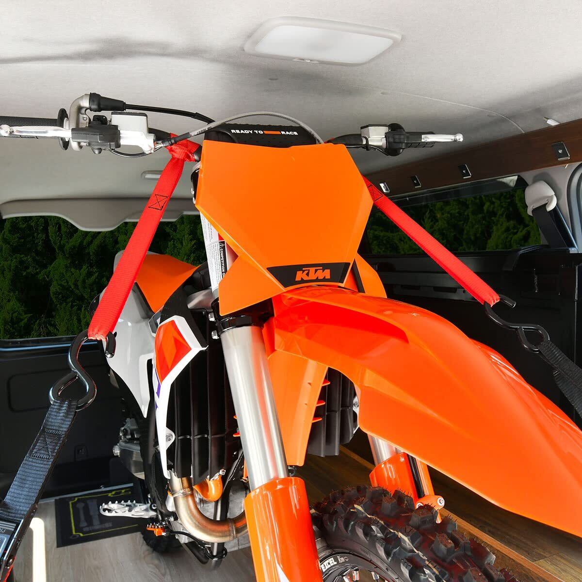 タイダウンベルトでバイクを固定する際の補助ベルト。車体を傷つけずにしっかり固定することができる。