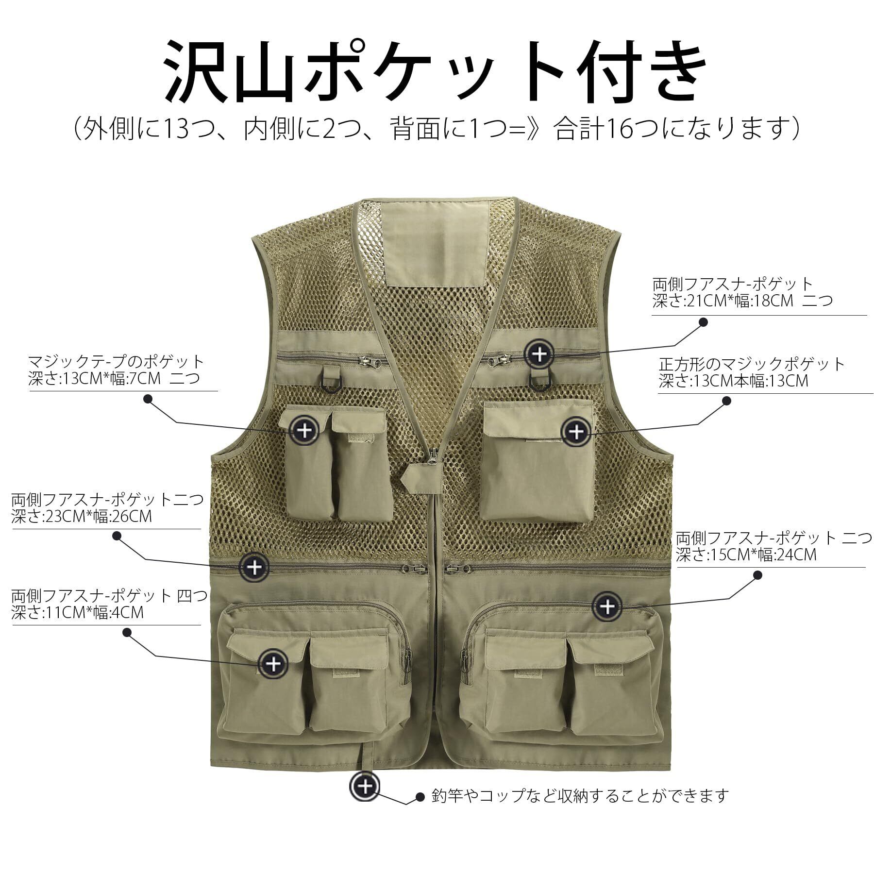 [AOWOFS] フィッシングベスト メッシュベスト メンズ アウトドアベスト ポケット多い 秋 軽量 通気 速乾 多機能 お釣り 撮影 山歩き 射撃 登山服 大きいサイズ ミリタリー 作業着