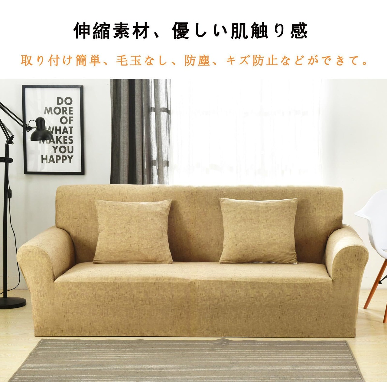 【素材】高品質ポリエステル+スパンデックス、伸縮素材、優しい肌触り感。サイズ:2人掛け145-185cm。ご注意: カバーはストライプのような柄があります。無地ではありません。ソファーカバーの細かい部分写真ご覧ください。