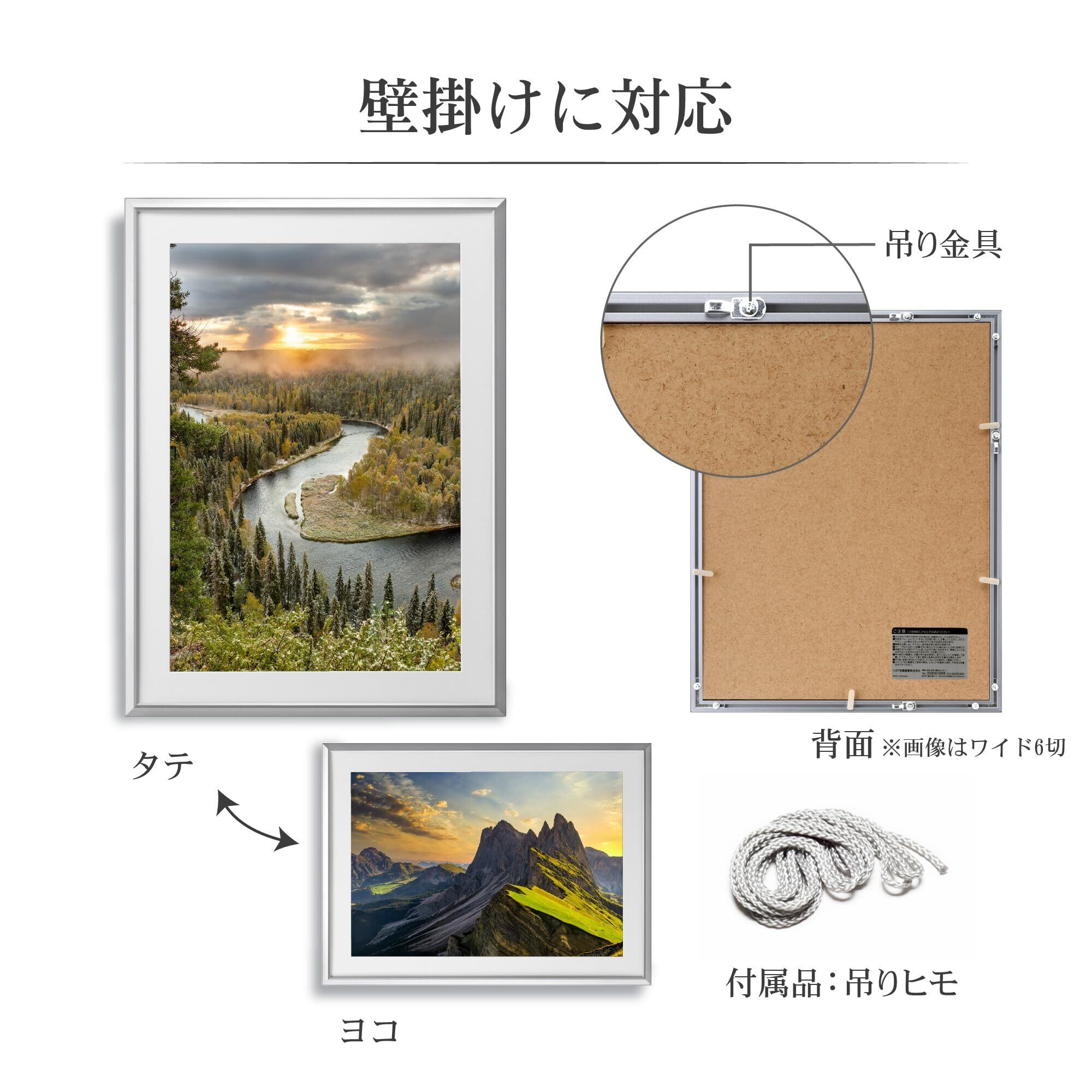 2L、6切、A4サイズは背面にスタンド付き。吊りヒモは全サイズに付属しています。