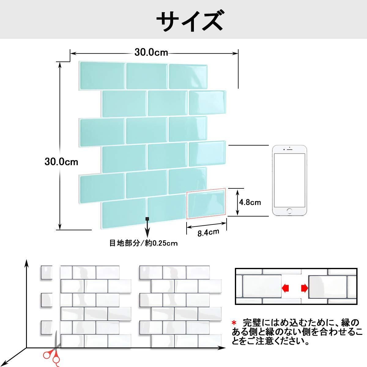 彡本物っぽくリアル。片手で持ちやすく、貼りやすく30.0cm X 30.0cm/枚 (5/10枚セット)。タイル部分の厚さ:2.5mm。分厚い3Dタイルシートは薄めシールより本物のタイルのように見えます。少し凹凸のある壁面に貼り付けても、平らなままでいられます。シワが出ることを防ぐに効果的です。