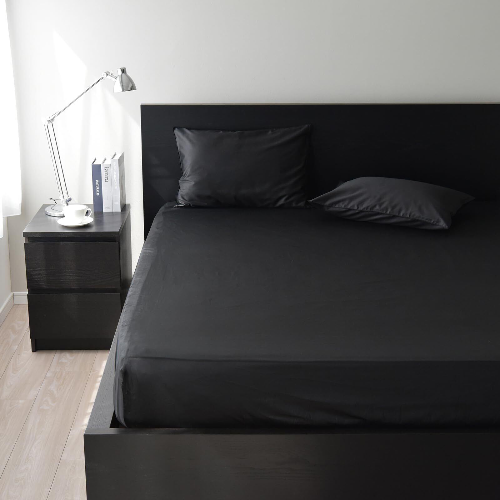 【在庫処分】ボックスシーツ 日本製 シングル 40マチ 綿100% サテン350本高密度生地 防ダニ ベッドシーツ シルクのような肌触り 北欧 おしゃれ 超長綿 北欧 ホテル仕様 ノーブル (シングル 100x200x40cm, ブリリアントブラック) | ニコニコSHOP