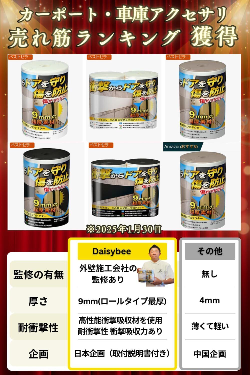 【車ドアの衝突防止に】駐車場クッション 【 超厚 9mm 】車 壁 傷防止 簡単設置 高耐久素材 Daisybee 200cm*20cm*9mm グレー 1巻