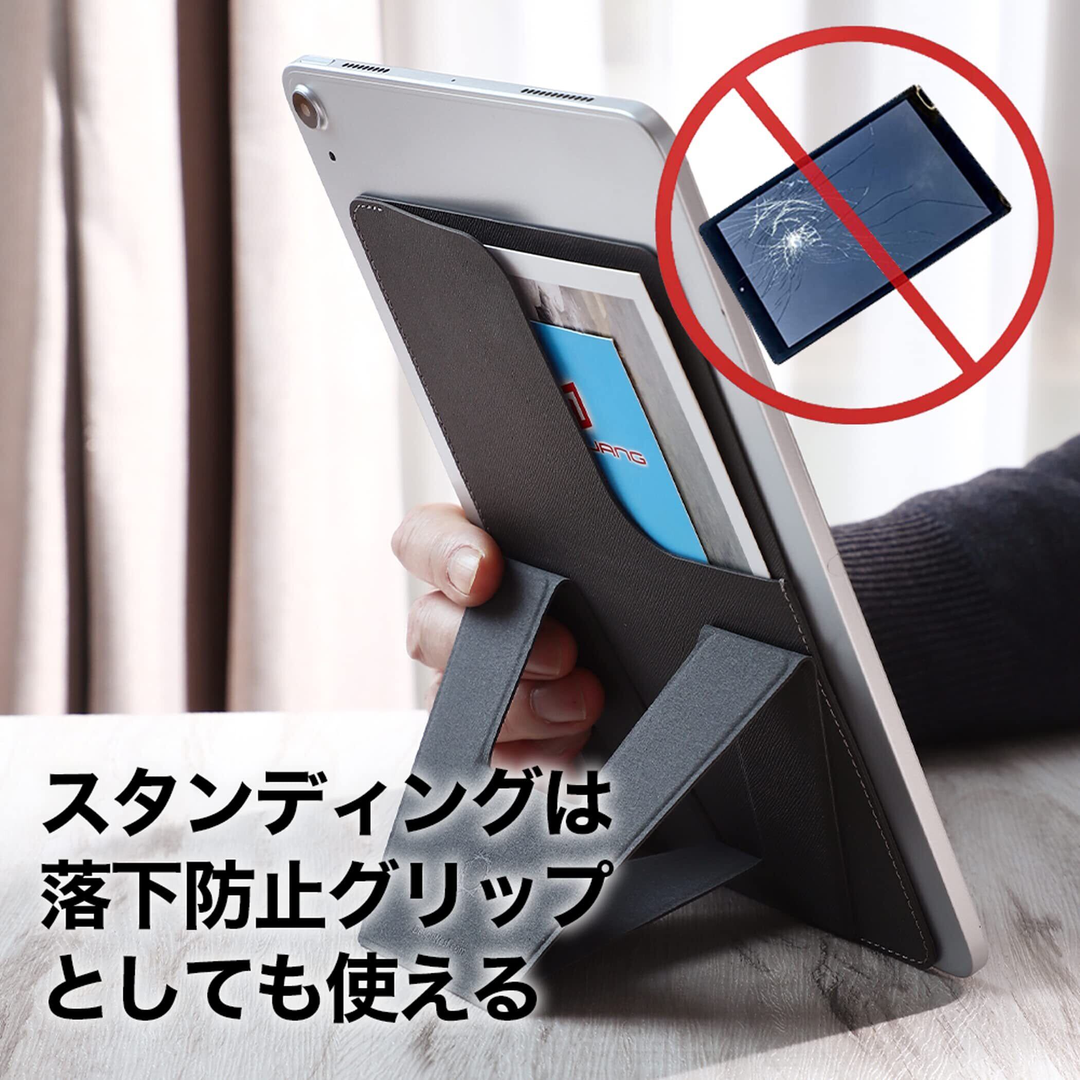 【在庫セール】FoldStand Tablet large タブレットスタンド 超薄型 縦置き 横置き 2Way 貼り付け パッドスタンド 落下防止 繰り返し使える 9~14インチ対応 グレー | ニコニコSHOP