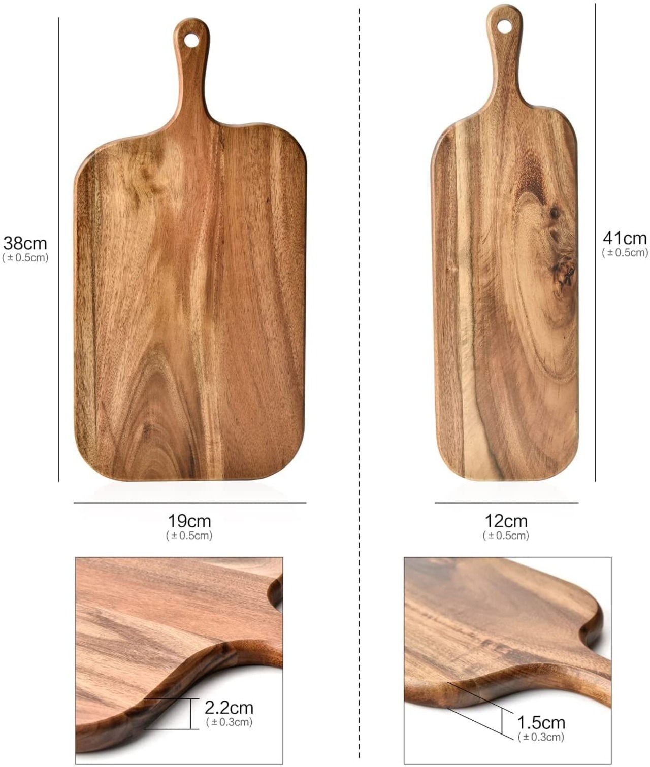 【数量限定】取っ手付き木製カッティングボードセット キッチン用 大小ロング2枚セット アカシア木製カッティングボード 肉 チーズ パン 野菜 果物対応 サービングボード チーズボード | ニコニコSHOP