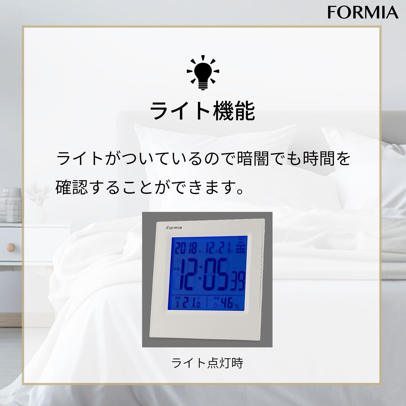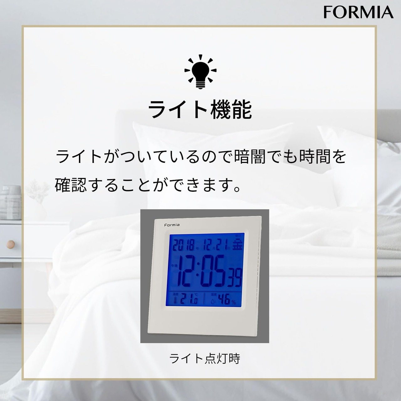 Formia(フォルミア) 電波 目覚まし時計 置き 見やすい 温度計 湿度計 温湿度計 日付 曜日 デジタル 保土ヶ谷電子販売 ホワイト HT-009RC