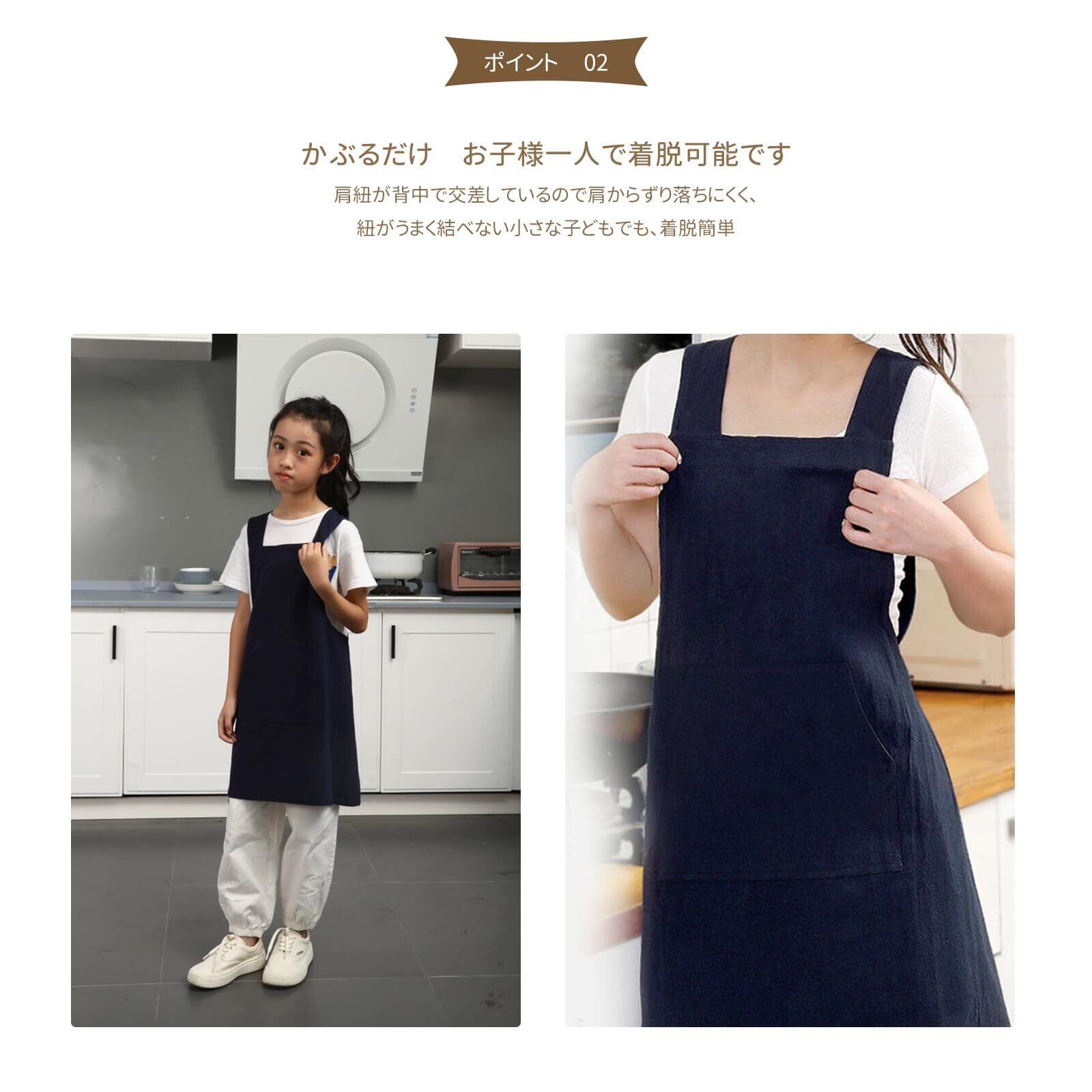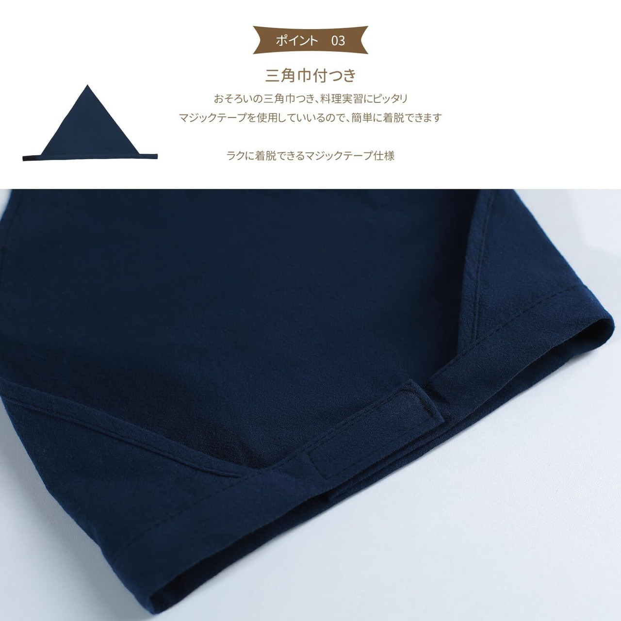 [JIAHU] エプロン 子供 キッズ 子供エプロン 男の子 女の子 被るだけ 子供用エプロン 三角巾 セット 小学生 中学生 三角巾セット リネン 子ども おしゃれ 可愛い 着脱簡単