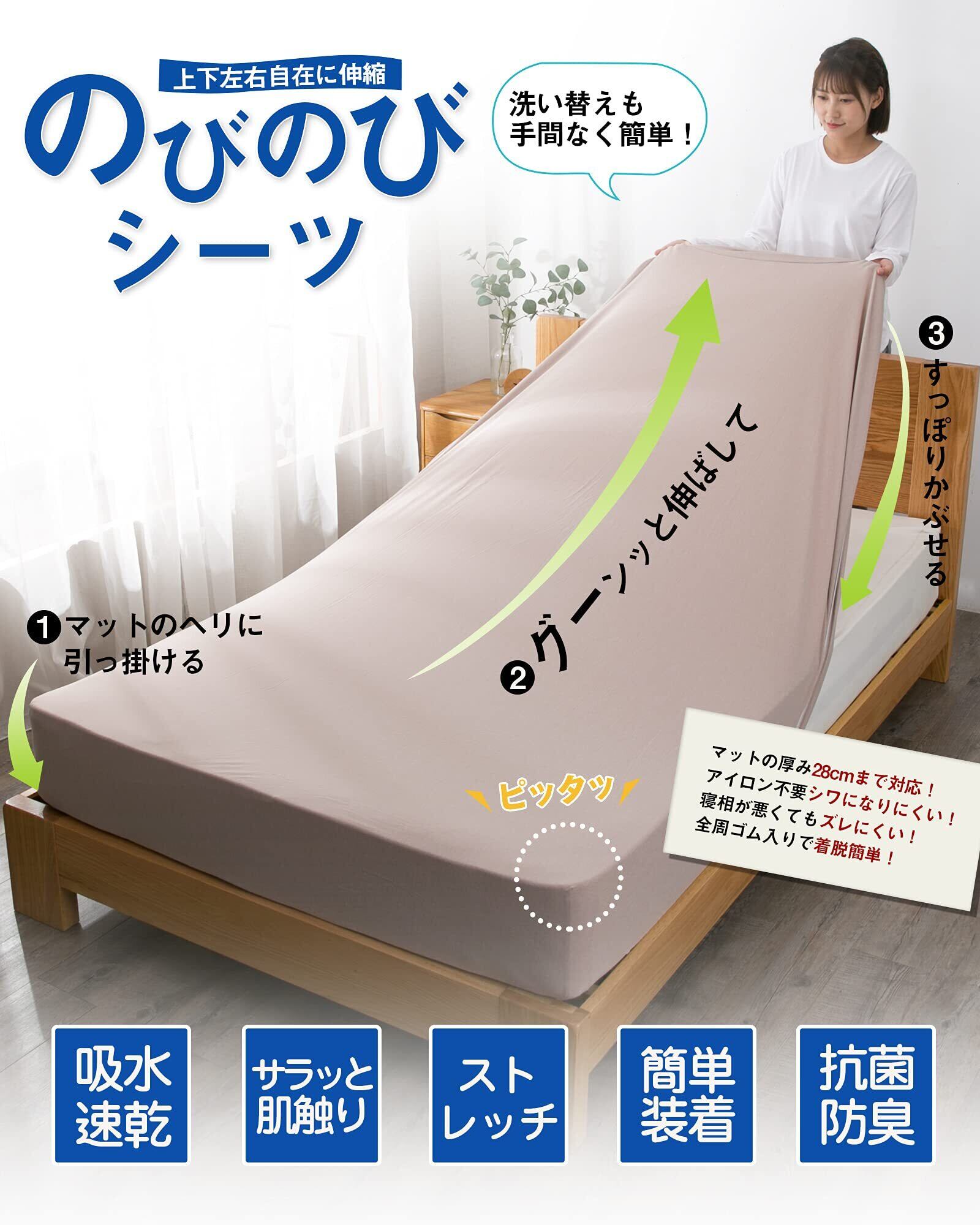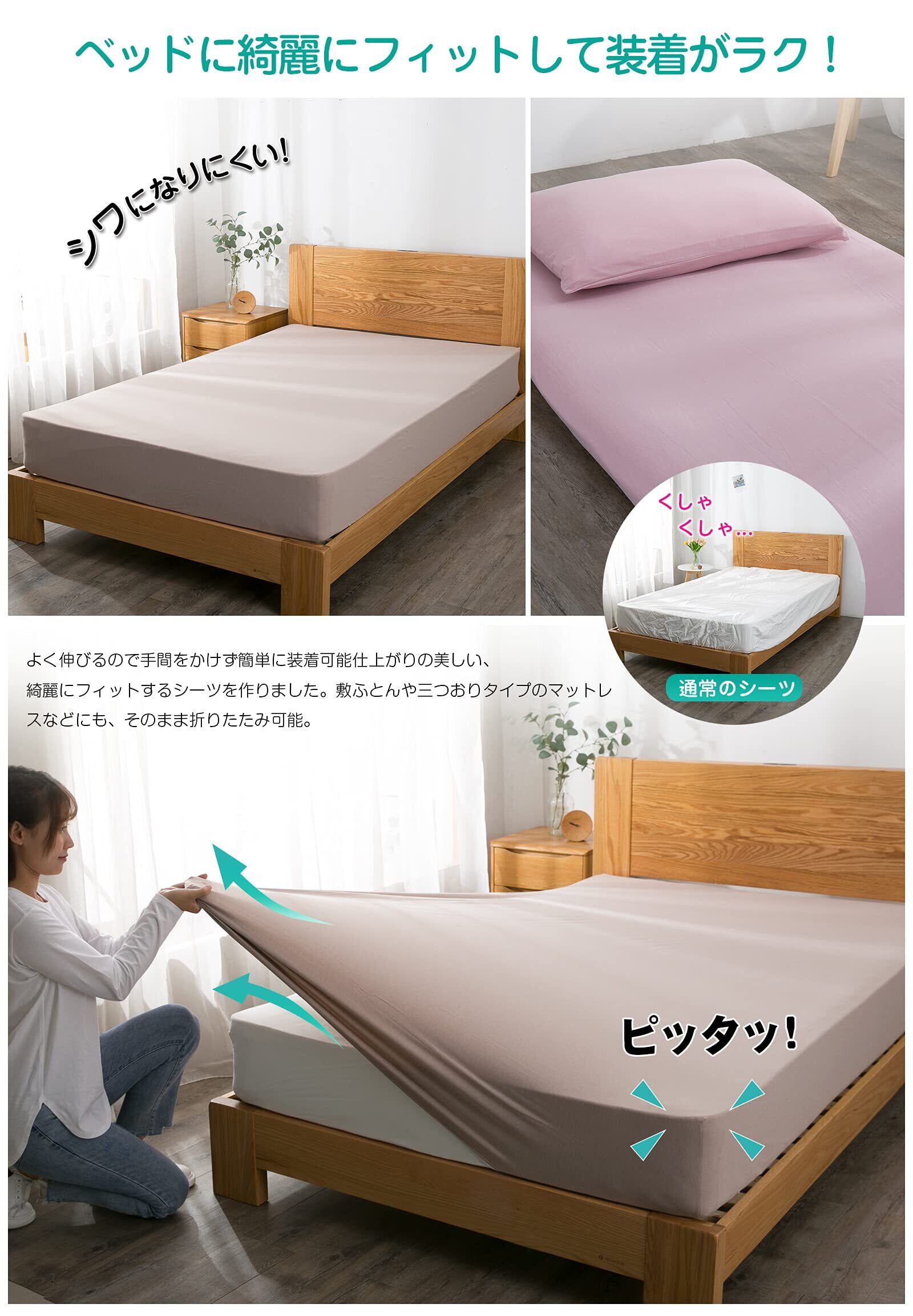 【ストレッチ性&付け外し簡単】❶伸縮性に優れタテにもヨコにも伸びるストレッチ素材だから、手間をかけず簡単に装着可能。❷シワになりにくく、アイロンいらずでキレイにフィットするBOXシーツです。❸いろいろなサイズのマットレス、敷ふとんや三つおりタイプのマットレスなどにもぴったりフィットのボックスシーツです。そのまま折りたたみ可能!面倒家事も短縮できます。