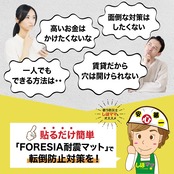 注意事項・家財底面と耐震マットの触れる面積が小さい場合は、耐荷重が少なくなります ・本製品で物を吊り下げないでください ・フッ素樹脂加工など撥水性のものには使用できません(セロハンテープがしっかり付く面は使用可)・木材などの凹凸のある面やざらざらした面には適しません・本製品は地震の被害を最小限に抑える商品です。 本製品使用により発生した破損事故や地震による損害に対して責任を負うものではありません