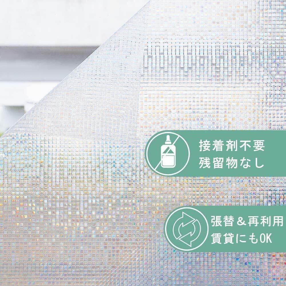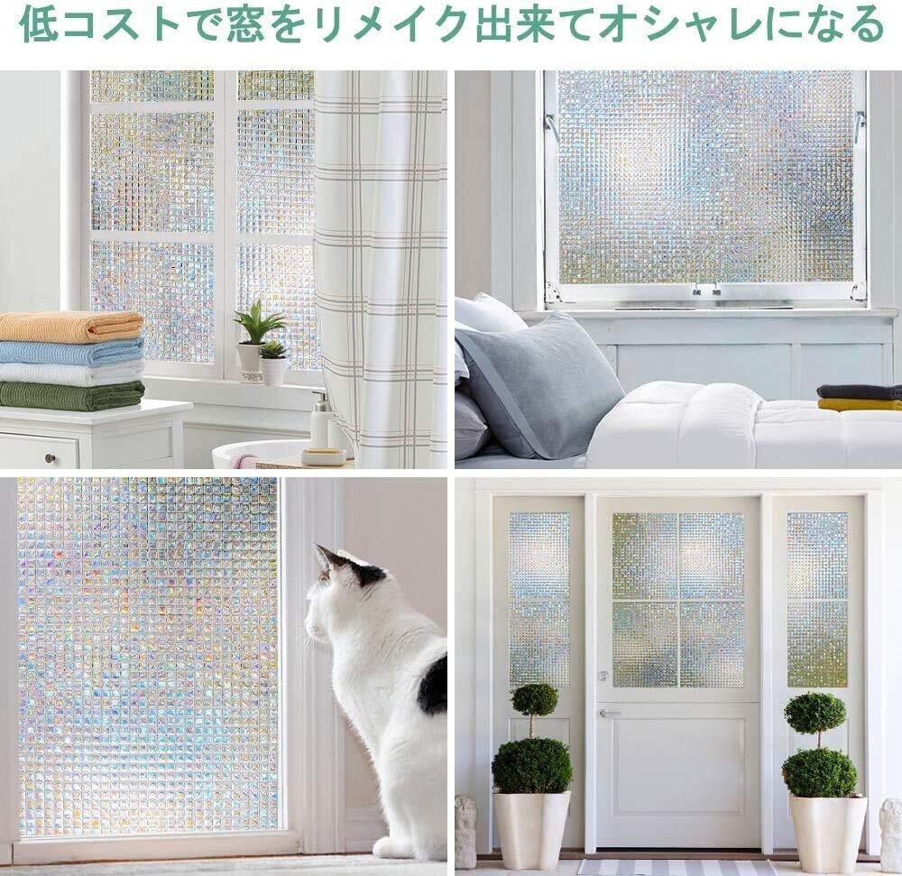 【日除け・プライバシー保護】窓用ガラスシールは一部の強烈な日光をよく遮り、紫外線を遮断し、日焼け止めと断熱ができ、太陽光で家具が老化するのを防ぐことができます。冬は暖かくお部屋の暖気を逃がしません(断熱效果)。半透明の状態は、のぞきを防ぎ、プライバシーを守ることができる上に、部屋を暗くすることもありません。採光に影響しません。