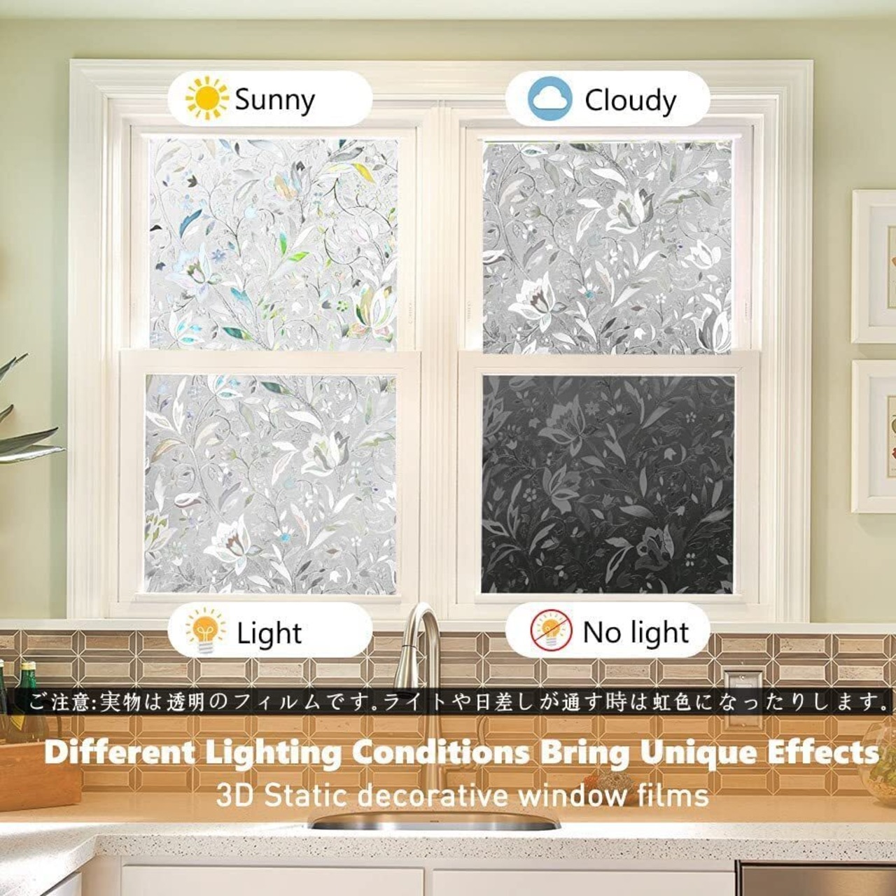 【在庫処分】Homya 窓 めかくしシート 窓用フィルム 目隠しシール 3D 花柄 窓断熱シート 結露防止 飛散防止 UVカット 浴室 風呂 玄関目隠し 水で貼る 貼ってはがせる 防犯フィルム 窓ガラスフィルム 日差し対策 5m | ニコニコSHOP