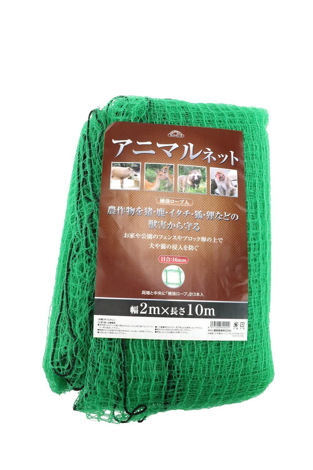 貴方の大切な農作物を守る【用途】猪、鹿、イタチ、狐、狸等の獣害対策【特徴】・お家や公園のフェンスやブロック塀の上にも設置可能・犬や猫の侵入も防ぐ・補強ロープは両端と中央に計3本入っている【注意事項】※使用時にはネットが風で飛ばされないように吊り具やロープ・パッカー等で固定してください。※廃棄するときは地元の行政の定めるルールに従って処理してください。※火気の近くで使用しないでください。※人や重量物を支えたり、落下防止には使用しないでください。※使用しない時は屋内に保管してください。