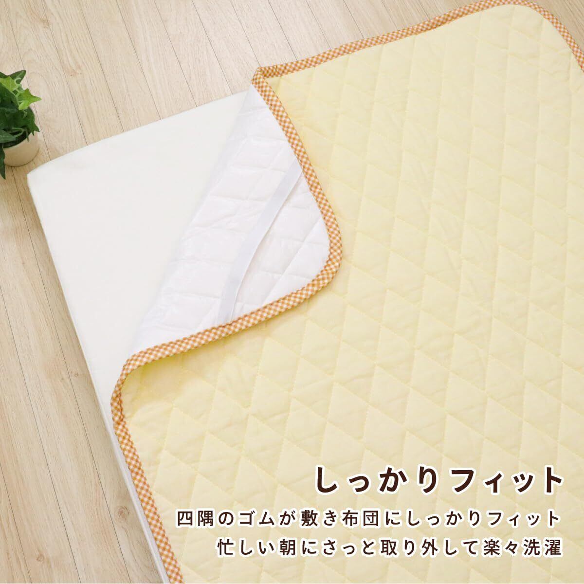 【1枚で2役】 これ1枚で防水シーツと汗取りパッドの2役をこなす便利アイテムです。表面のふわふわ中綿入りキルトガーゼ地で汗をしっかり吸水し、裏面は防水加工を施しているのでおねしょでベビー敷布団がぬれてしまうのをしっかりと防ぎます。