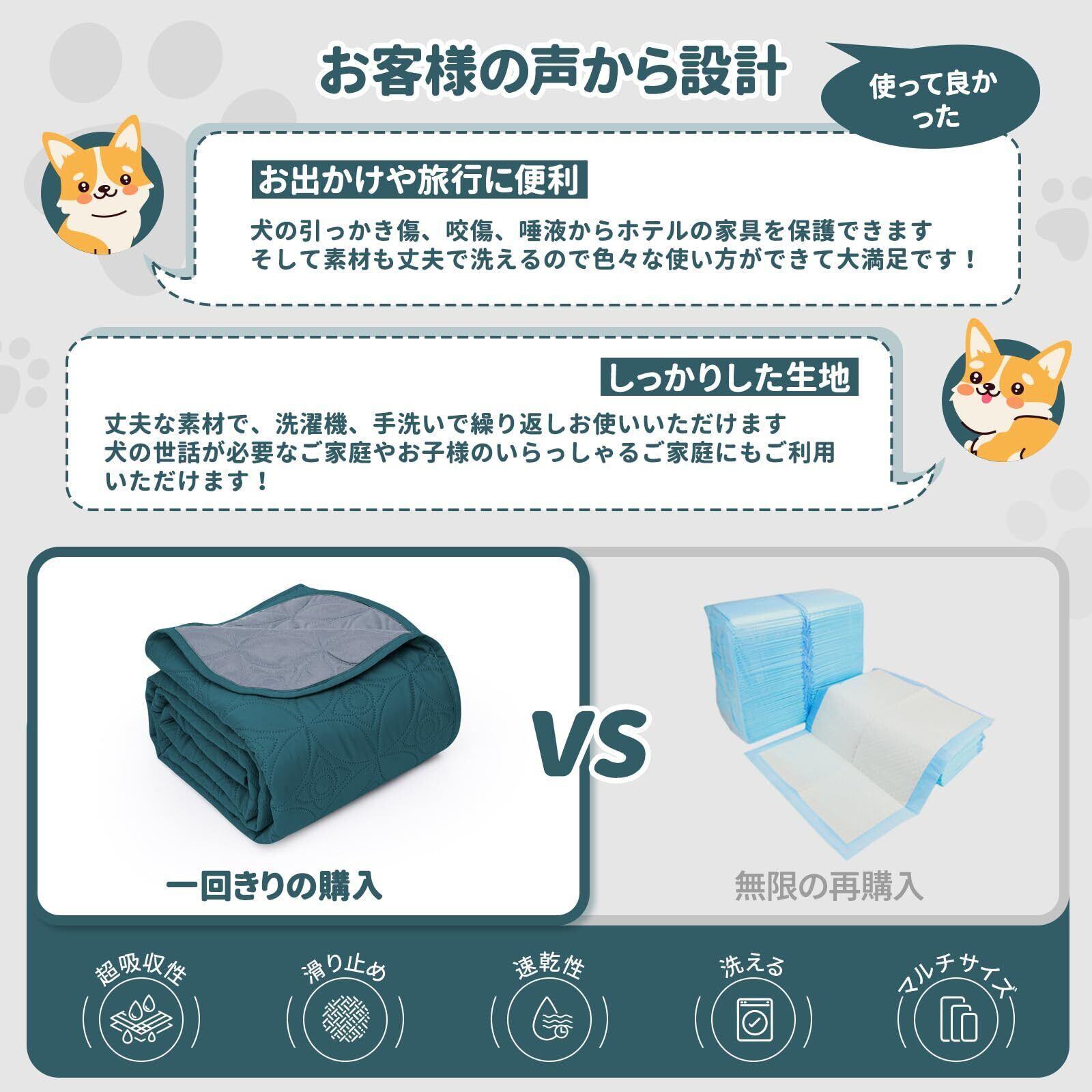 【繰り返し使える&優れた速乾性】 :丈夫な防水カバー ベッドは洗濯機と手洗いが可能です。 素材は防水シーツ ベビーを使用し、サラッとした肌触りが心地良いです。 生地は柔らかく、摩耗しにくく、耐久性があり、長く使用できます。 ポイントは、使い捨てのペットシーツよりも経済的でお金を節約し、環境に優しいことです。 お手入れもお手入れも簡単で、洗濯機に入れるだけで乾きも早いです。防ダニ・抗菌作用もあるので赤ちゃんや介護の必要な高齢者の方にも安心してお使い頂けます。