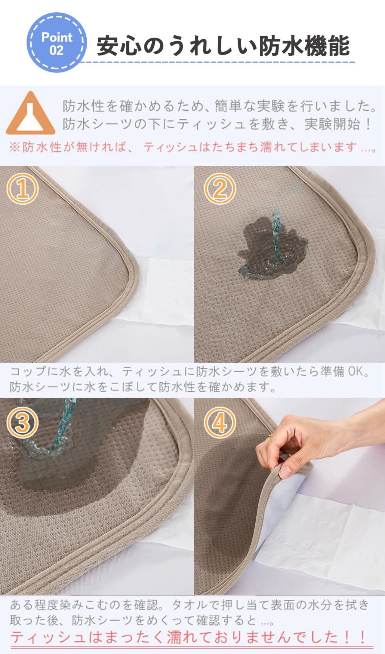 【丸洗いOK】ご自宅の洗濯機で丸洗い可能、いつでも清潔に使えます。おねしょの後処理や衛生面でも大助かります。水流を「弱」にし「洗濯ネット」をご使用ください。防水素材なので、シーツは完全に脱水できません。※乾燥機は使用しないでください。 ※電気毛布など熱源のあるものとの併用不可です。