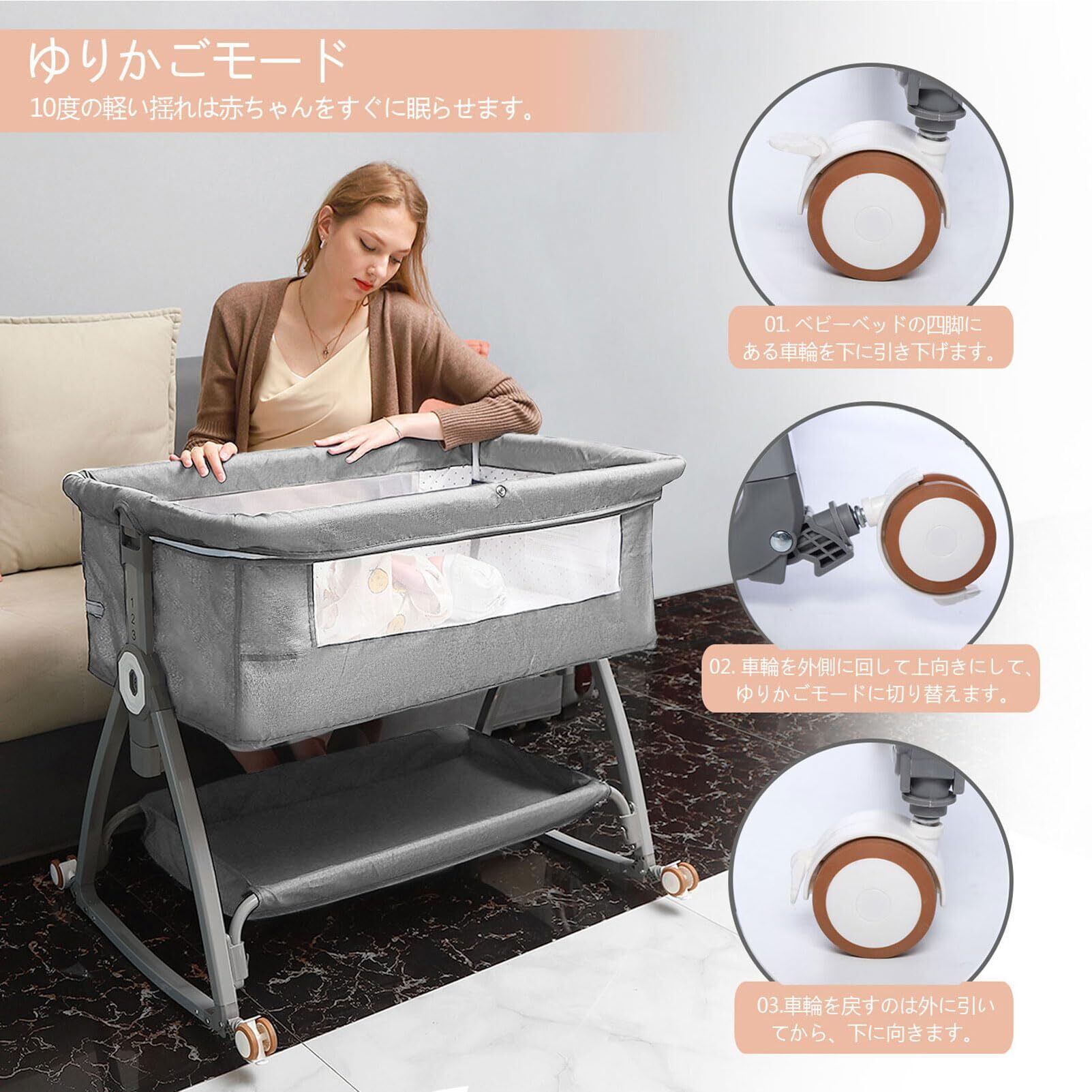 【特価セール】新型 5IN1 ベビーベッド 折畳み可能 高さ6段調節可能 添い寝ベッド 組み立て簡単 ゆりかごに変身可能 おむつ替え スペース 収納バスケット&マット&蚊帳&固定ベルト&キャスタ付き コンパクト移動簡単 通気性 洗濯可能 吐き戻し予防 出産祝い プレゼント 新生児0ヶ月~36ヶ月 英語&日本語取扱説明書付き | ニコニコSHOP