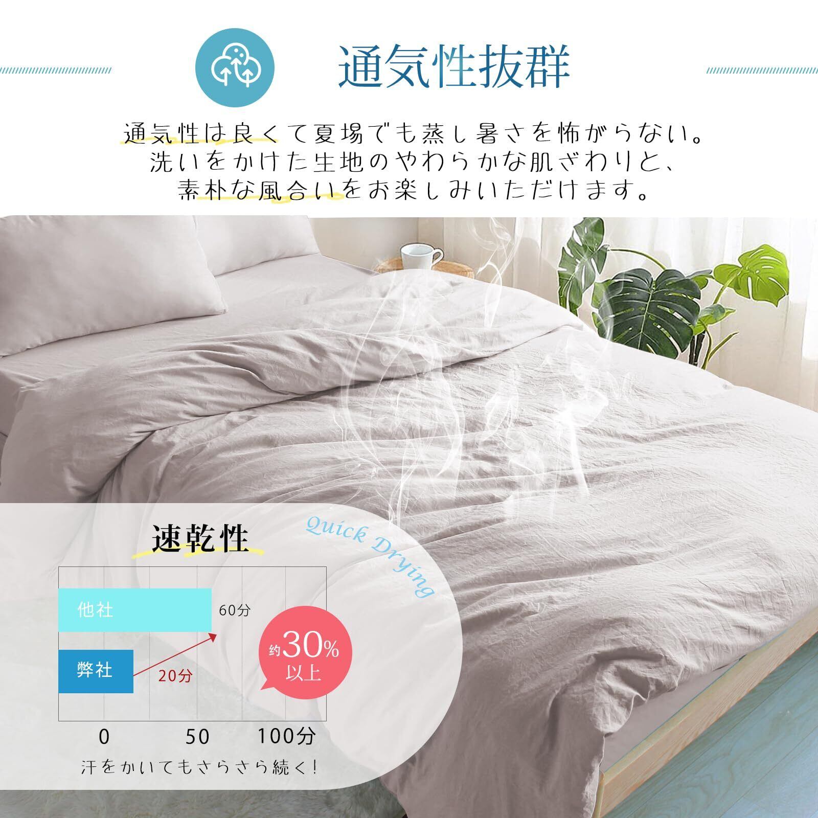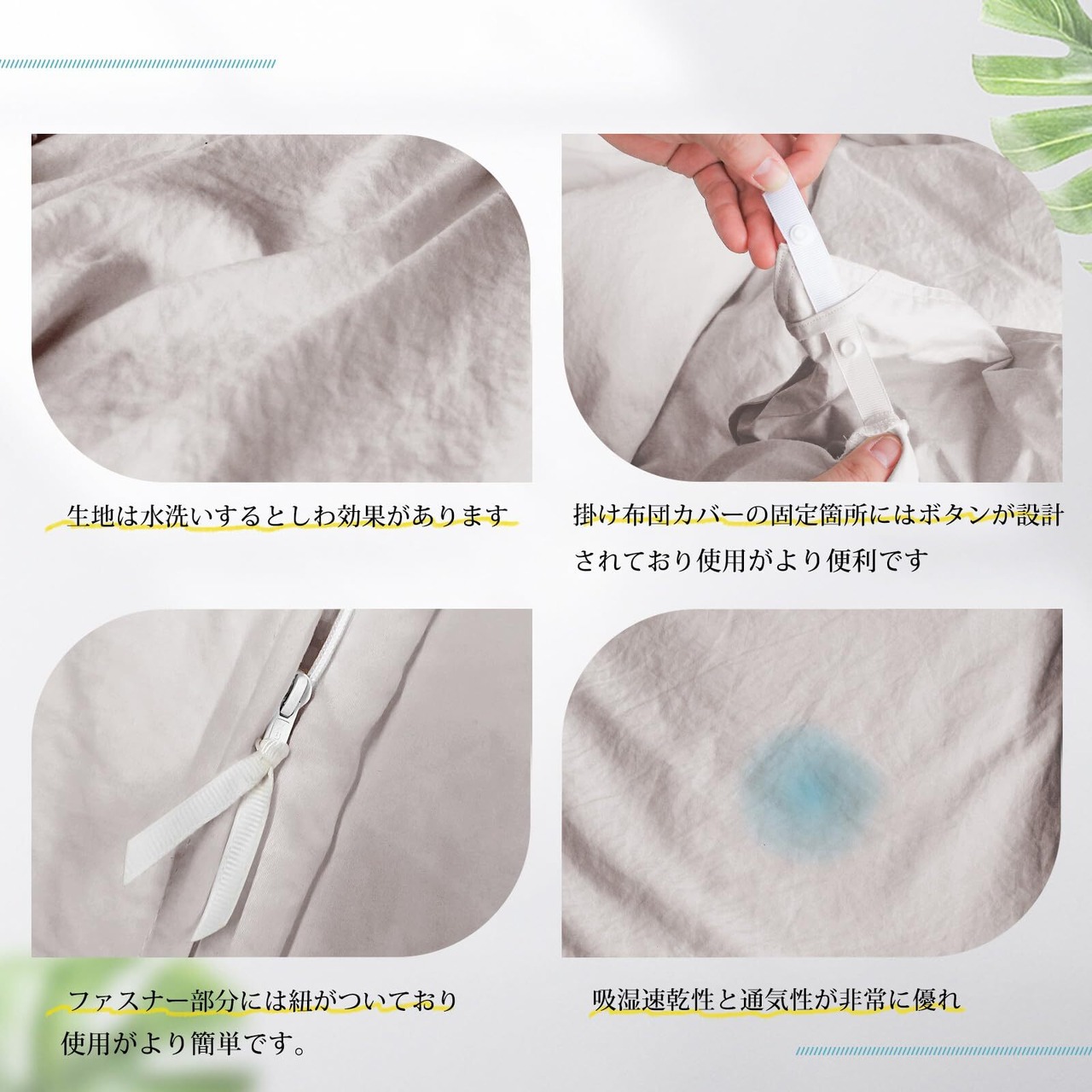 【オールシーズン向け】暑い季節は汗を吸いやすく、寒い季節は保温性に優れています。また通気性もよい、汗をかいても素早く湿気を吸い取り、発散してくれるので、いつでもサラサラとしています。この掛け布団カバーは一年を通じてお使いいただけます。