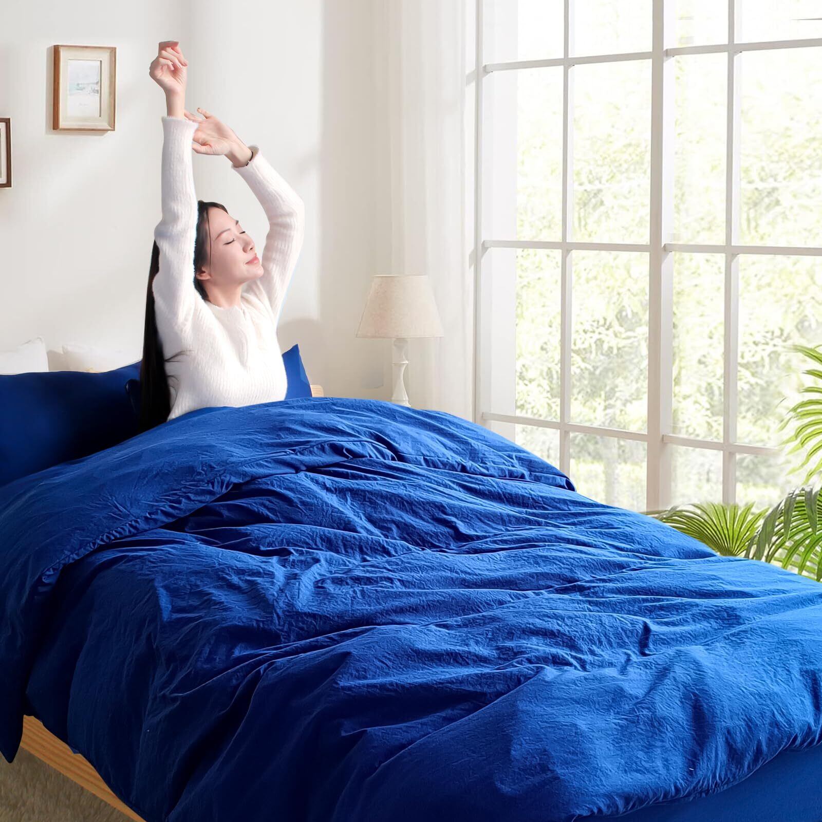 【洗いざらし+極柔な肌触り】:掛け布団カバーの生地を何度も洗って自然な風合いがでて更にピーチスキン加工して最初から肌になじむように仕上げました。洗濯ごとにもっと柔らかくなり、毛玉やほつれができにくく、静電気も少ないので、耐用性がよい長く愛用できます。
