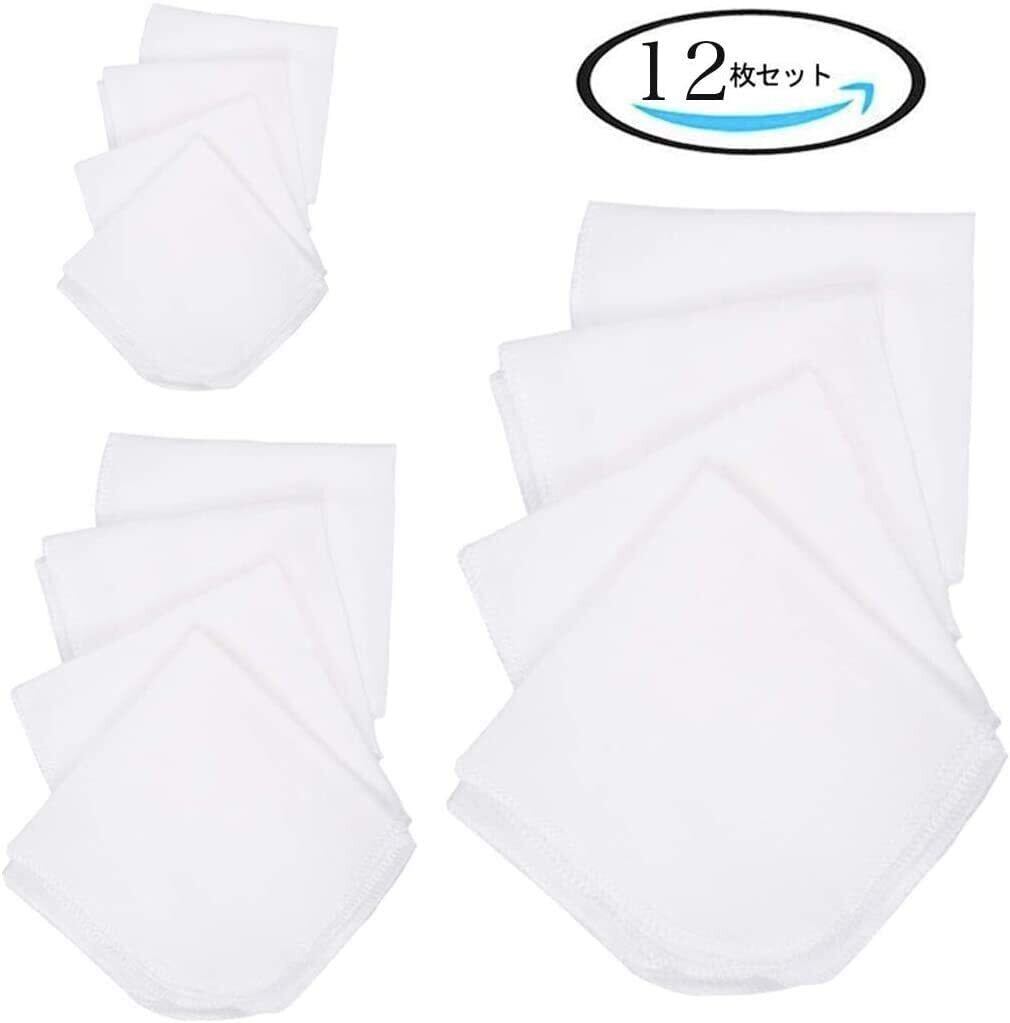 [MOMSMENU] ガーゼハンカチ 赤ちゃん 4重ガーゼのタオル 綿100% 柔らかい 無地 30x30cm 12枚 ホワイト