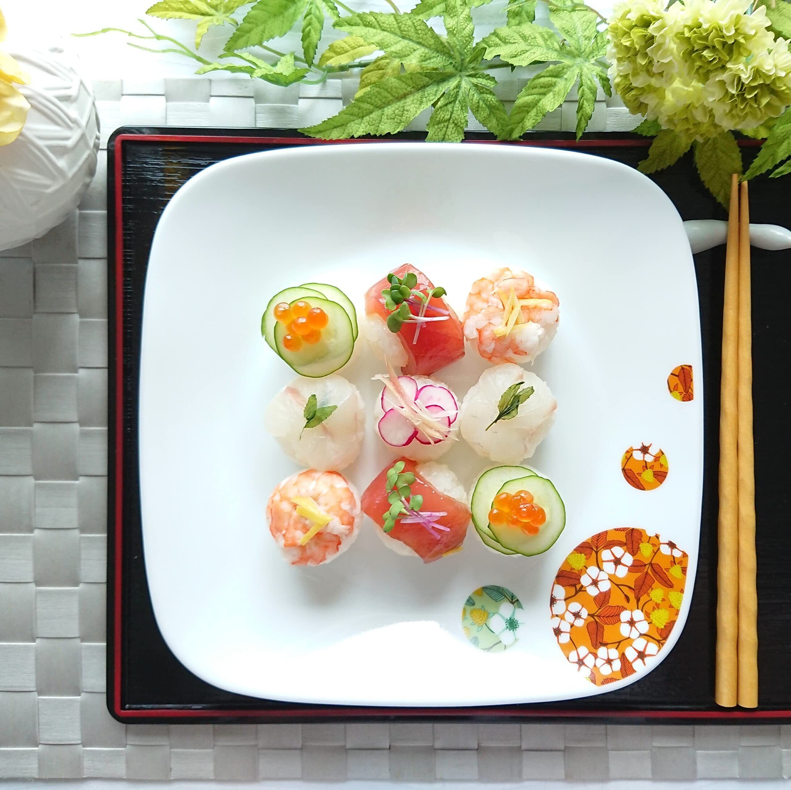 各シェイプごとに異なるカラフルな模様で、食卓を華やかに演出します。