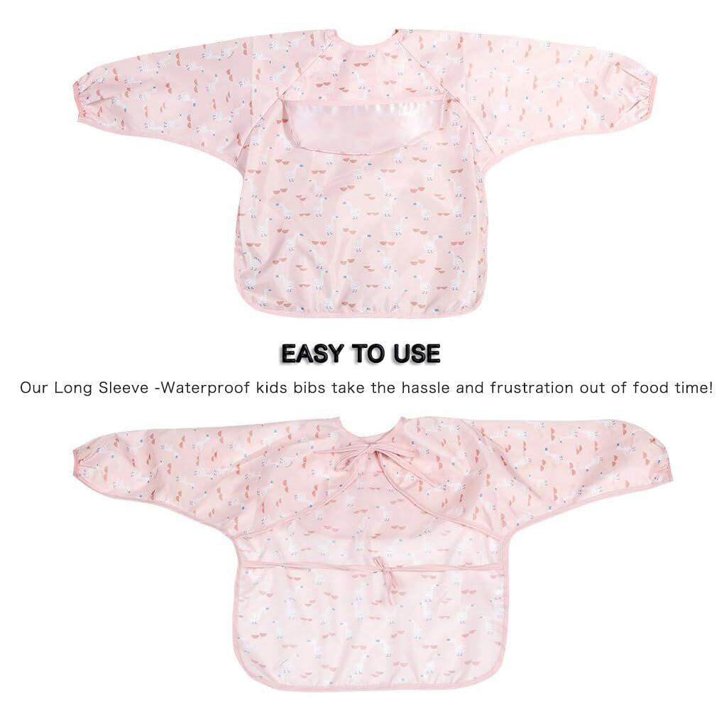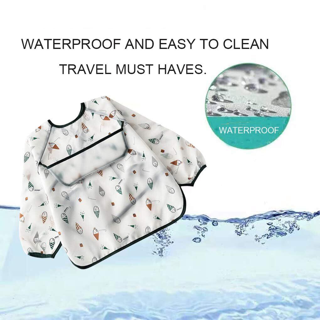 [MOMSMENU] 長袖エプロン 食事エプロン ベビー 立体ポケット 子供用 防水 軽量 18ヶ月から42ヶ月 2枚セット