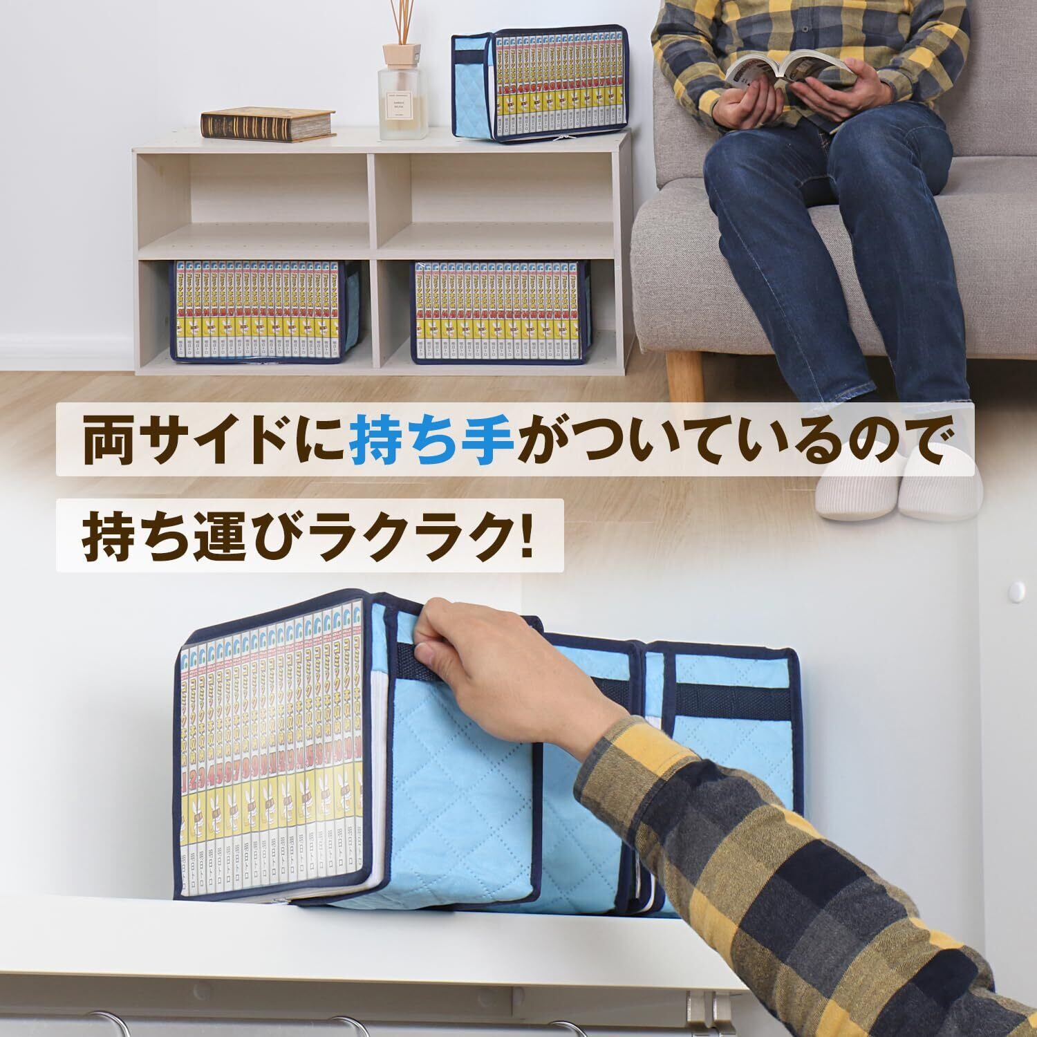 ●漫画本や単行本などのコミックを除湿・防ダニ機能付きの不織布でまとめてスッキリ収納。湿気やダニ、ホコリなどの汚れから本を守る。