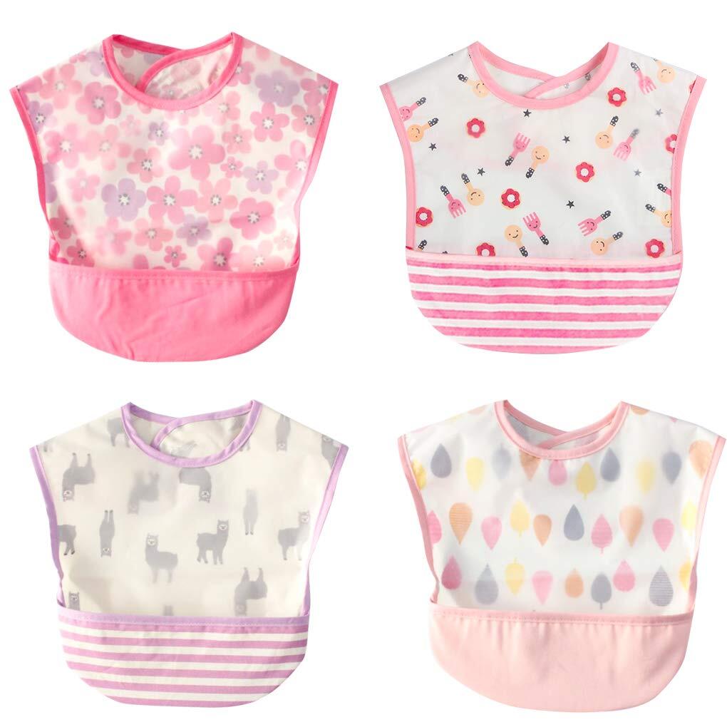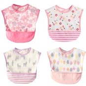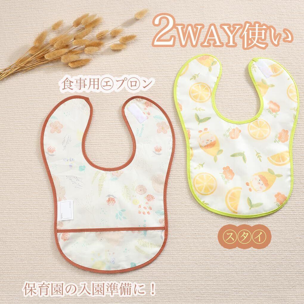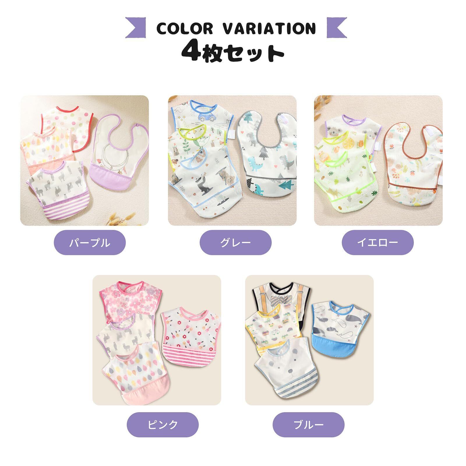 [MOMSMENU] 食事用エプロン ベビー エプロン 赤ちゃん 立体ポケット 保育園 名前入 汚いにくい 洗いやすいと乾きやすい 防水 軽量 4枚セット