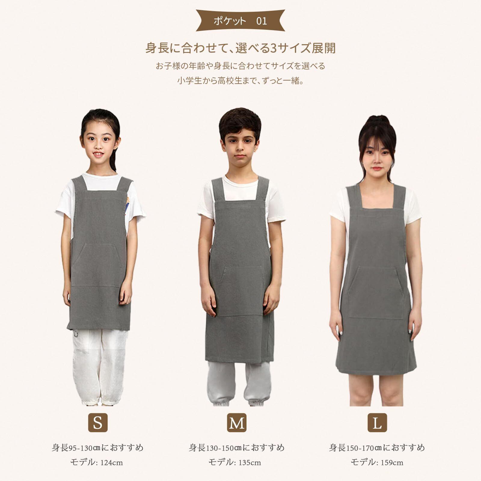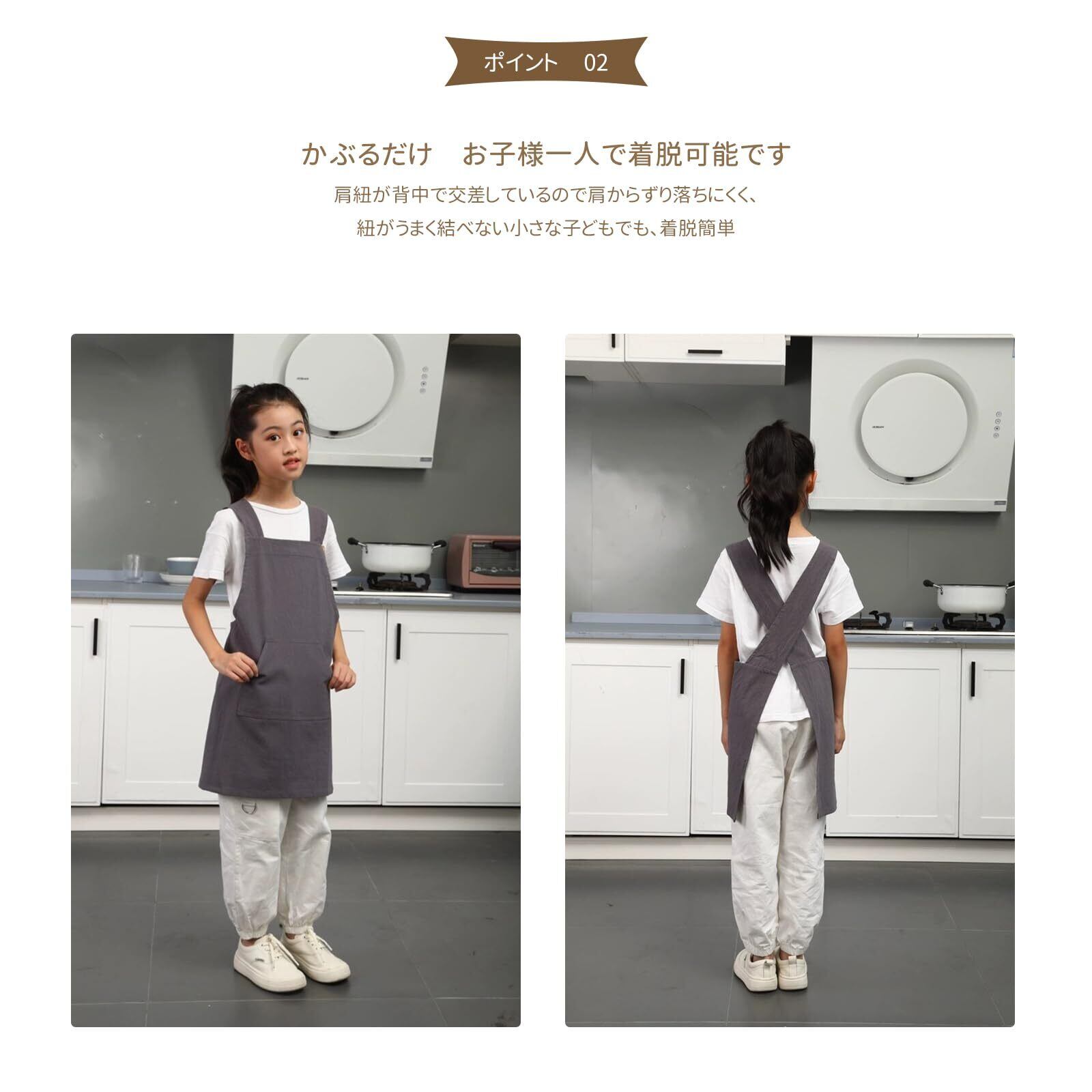 [JIAHU] エプロン 子供 キッズ 子供エプロン 男の子 女の子 被るだけ 子供用エプロン 三角巾 セット 小学生 中学生 三角巾セット リネン 子ども おしゃれ 可愛い 着脱簡単