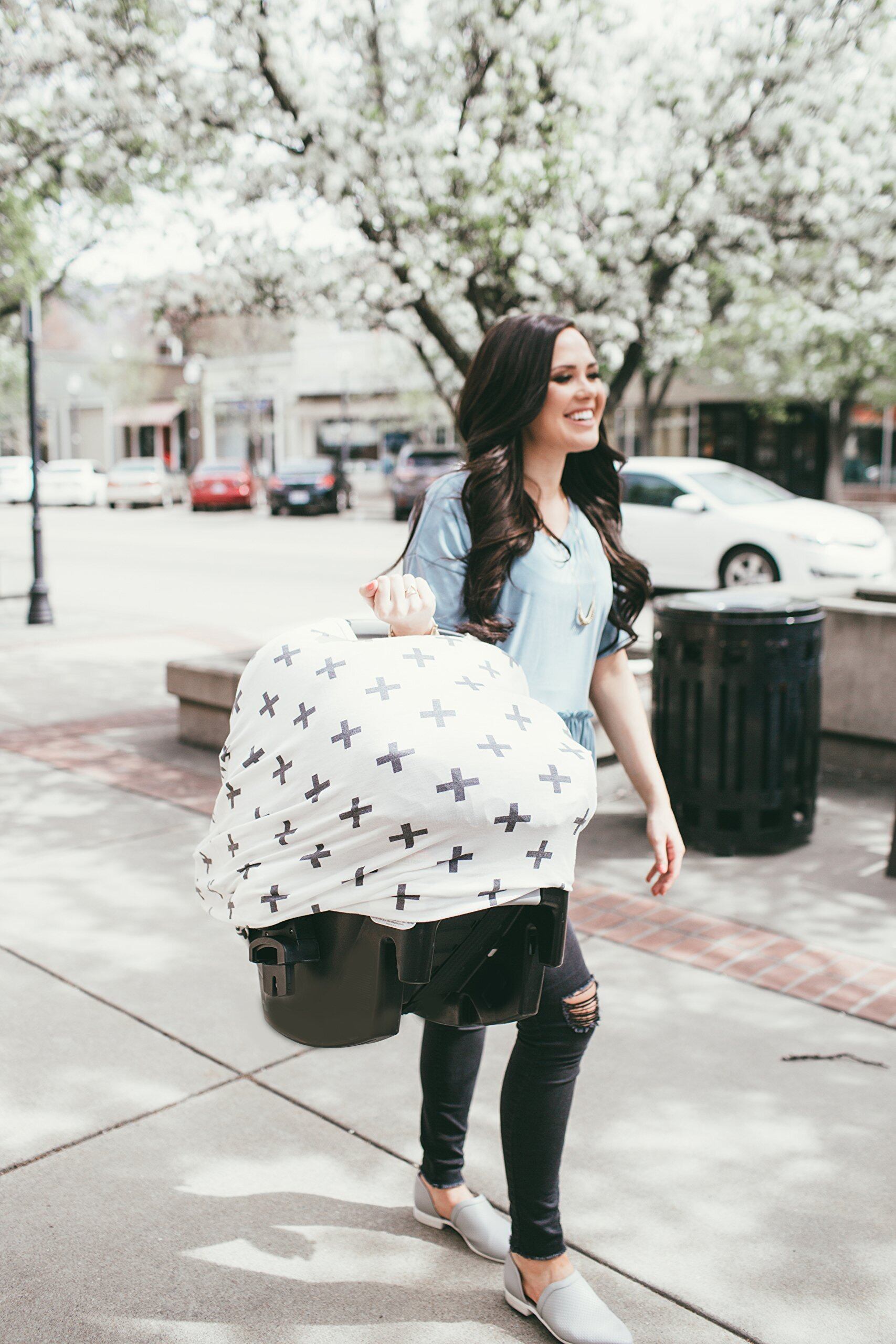 ●人前で授乳するときに、もう他人の視線を気にしなくて平気です。ママの体を360度完全にカバーするポンチョ型なので、お出かけ先でも安心して授乳ができます。