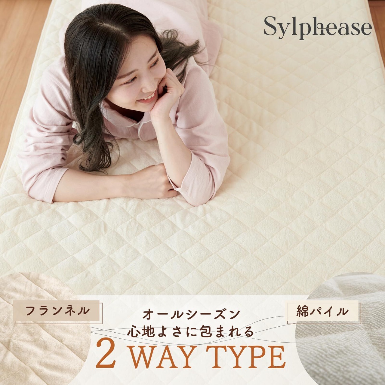 シルフィーズ 敷きパッド 5人用 ファミリーサイズ リバーシブル 280×205cm 綿100% タオル地 フランネル オールシーズン あったか 洗える 大きい 秋 冬 アイボリー