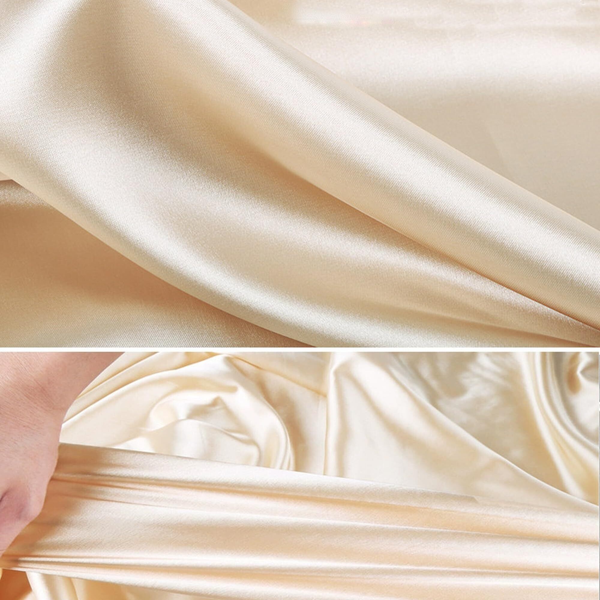 DERAYEE シルク風 サテン生地 織物 生地 輝き 約142cm×200cmカット 肌触りの良い 選べる7色 手作り DIY 裁縫 手芸 贈り物 (2M, シャンパンゴールド)