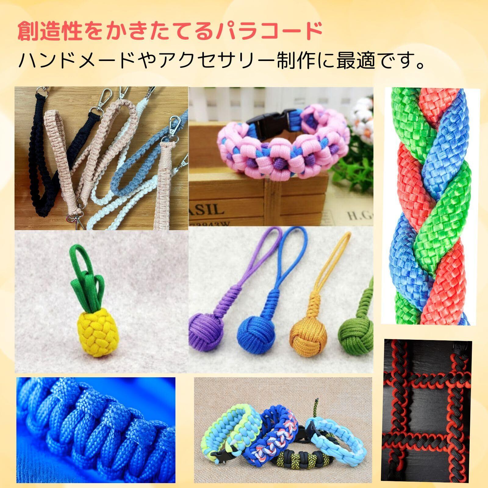 【様々なシーンで使えます】パラコードは多機能で、キャンプ、テントロープ、ハイキング、サバイバル、ハンモックの吊りロープなどのアウトドア活動をはじめ、荷物の固定、洗濯物干し、手芸、ブレスレット、キーホルダー、ストラップなどの手作りアクセサリー制作、ペットの首輪やリードの制作など、様々なシーンで活躍します。