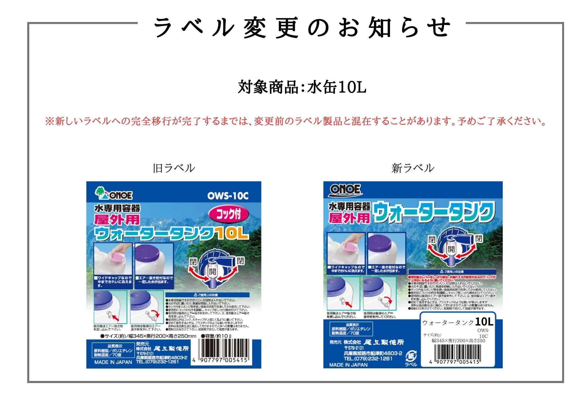 尾上製作所(ONOE) ウォータータンク 10~20リットル 防災グッズ ワイドキャップなので中まできれいに洗える エアー抜き栓付で水量が一定 コック使用時は足つき キャンプ