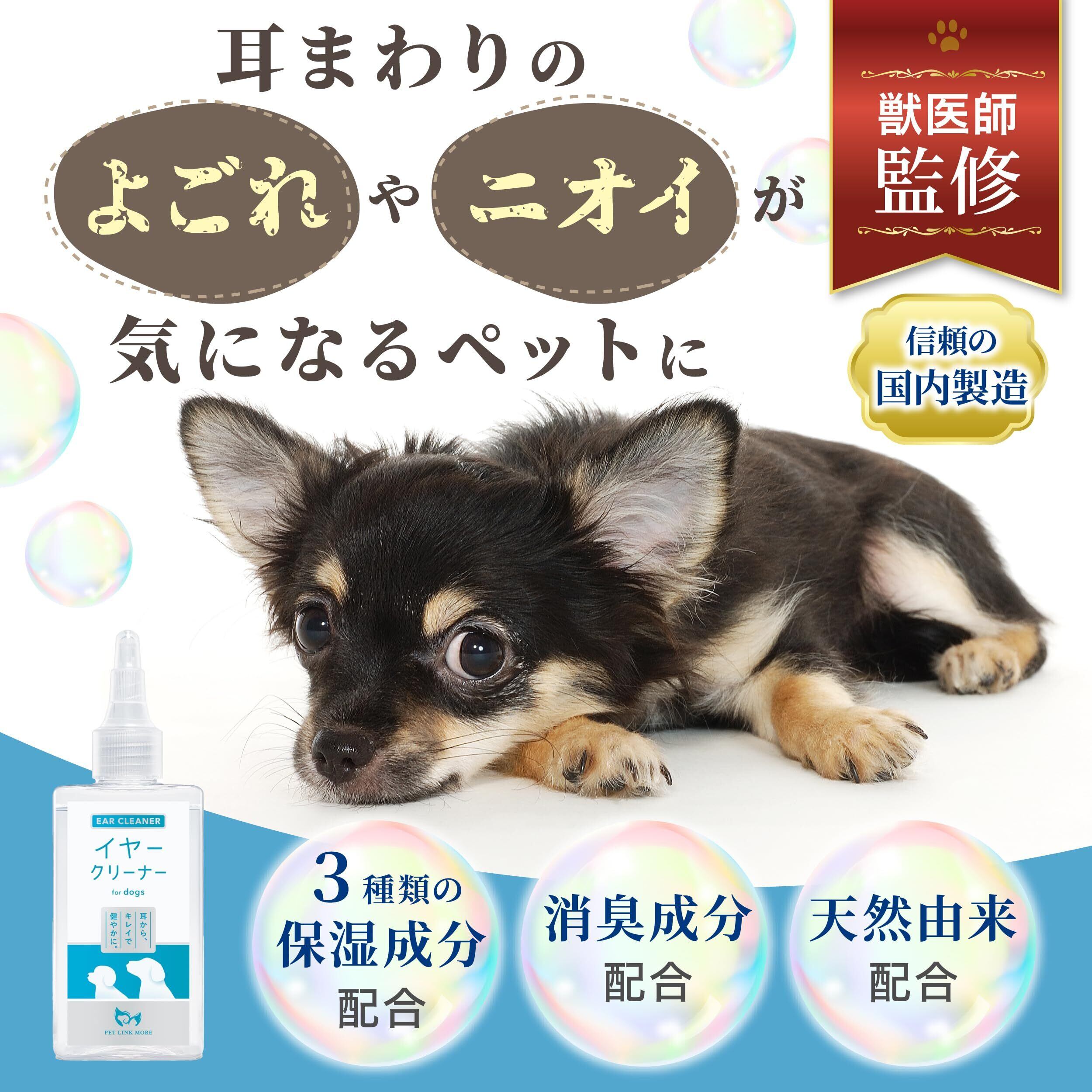 PETLINKMORE 【獣医師監修】イヤークリーナー 犬 ペット 耳掃除 洗浄液 消臭 除菌 耳のケア 低刺激 国内製造 100ml
