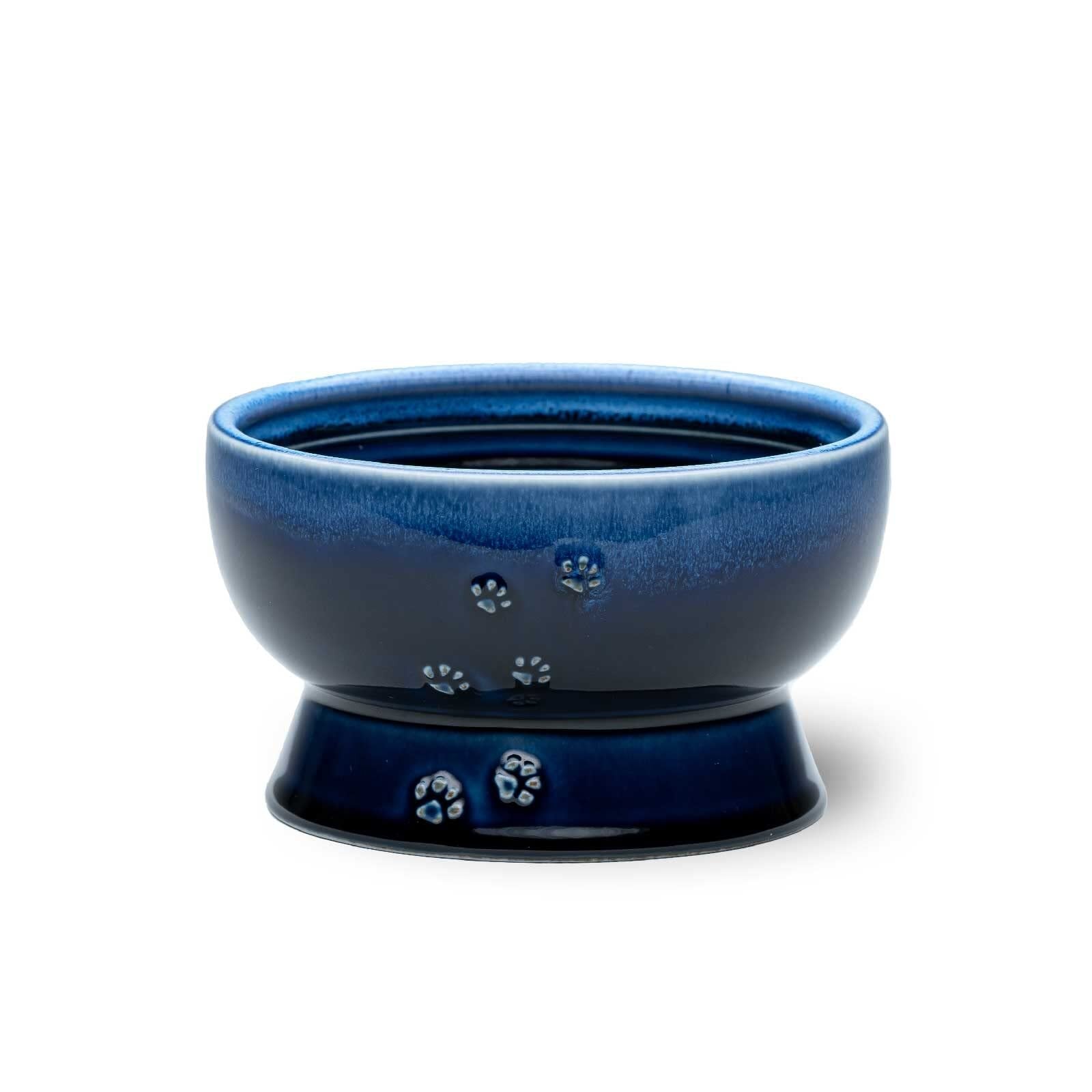 猫壱 猫用 脚付ボウル 美濃焼 日本製(ブルー, ウォーター) 電子レンジ&食器洗浄機対応