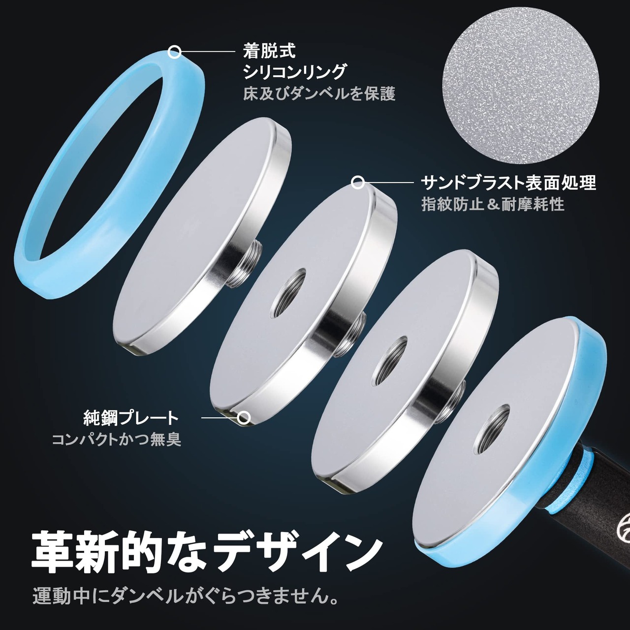 【連結シャフト&シリコンリング付き】専用の組立式連結シャフト(最大耐荷重100kg)が付属されており、別途の購入が不要! 最新のシリコンリングはダンベルの内周プレートでも使用でき、縦置き使用もOK!シリコンリングのおかげで、床を傷つける心配も全くありません! ※連結シャフトパーツ(別売り)を追加で購入していただくと、お好きな長さに調整することができます。