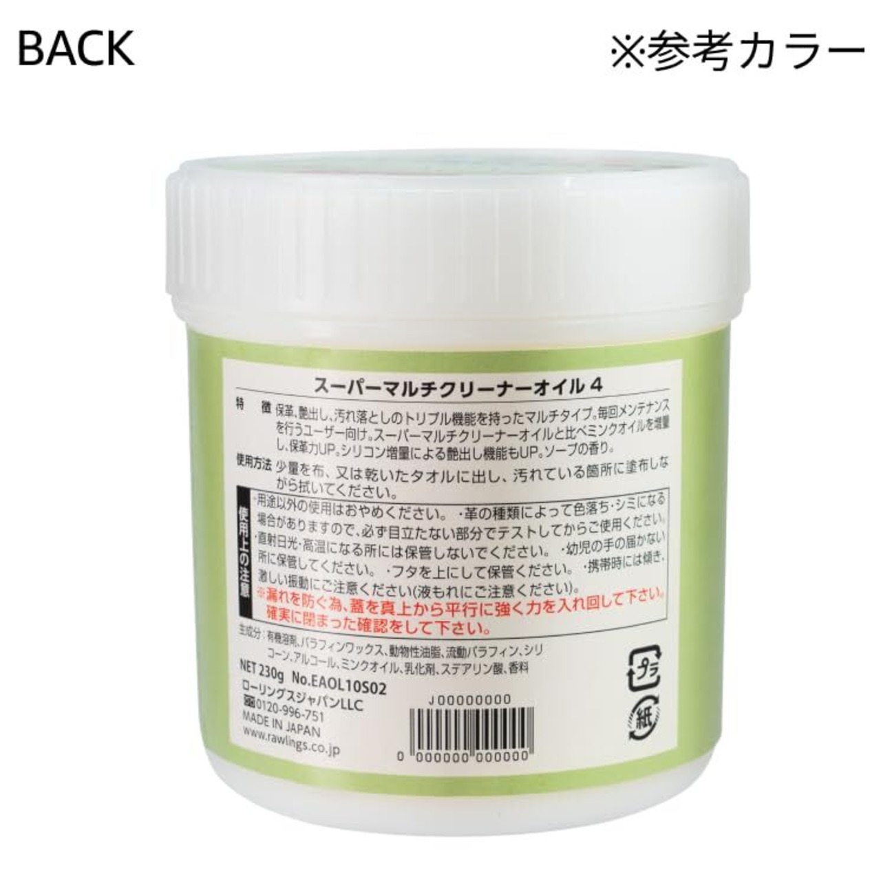 【成分】有機溶剤、パラフィンワックス、動物性油脂、流動パラフィン、シリコーン、アルコール、ミンクオイル、乳化剤、ステアリン酸、香料【製造】日本