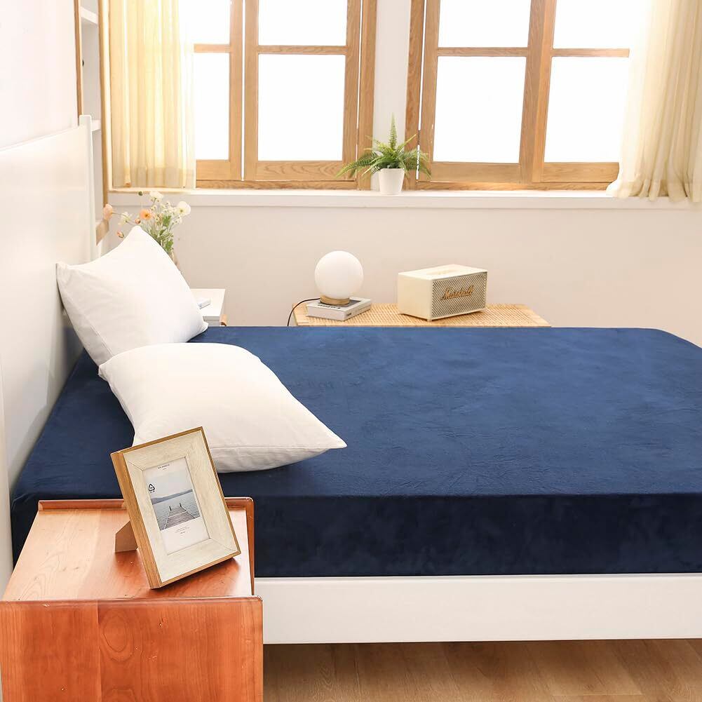 【特価セール】ボックスシーツ クイーン 冬 暖かい 高級マイクロファイバー 厚手 もこもこ 冬用シーツ ベッドシーツ 発熱 マチ部分約30cm 冬用 柔らかい 毛玉なし 吸水通気 シーツカバー フランネル 洗える 速乾 無臭・防臭防ダニ (クイーン・160×200cm, ネイビー) | ニコニコSHOP