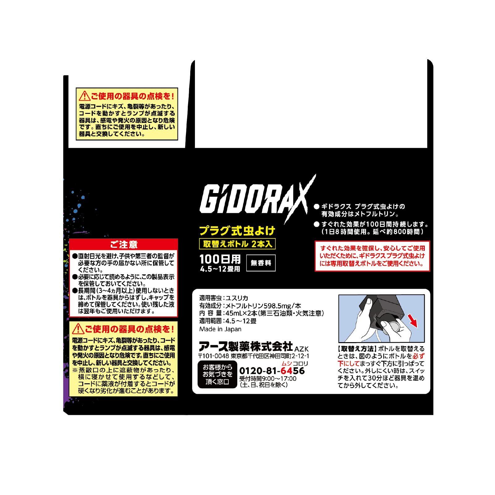 GiDORAX ギドラクス プラグ式 虫よけ 取替えボトル 100日用×2 詰め替え 蚊取り 蚊除け 置き型 屋内 屋外 蚊 対策 駆除 虫除け