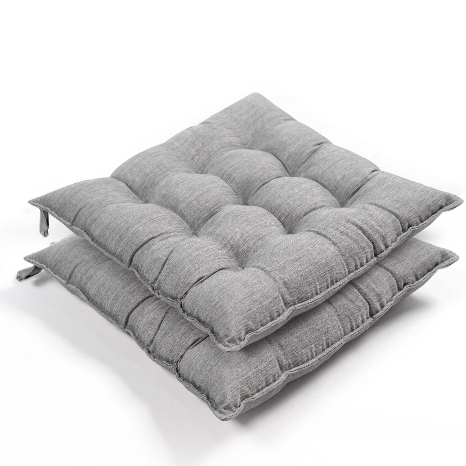【数量限定】AIFY 座布団 椅子 クッション 厚め 紐付き 2枚セット ふわふわ 麻風 無地 オールシーズン シートクッション ダイニングチェア用 42x42x5cm グレー 2枚セット | ニコニコSHOP