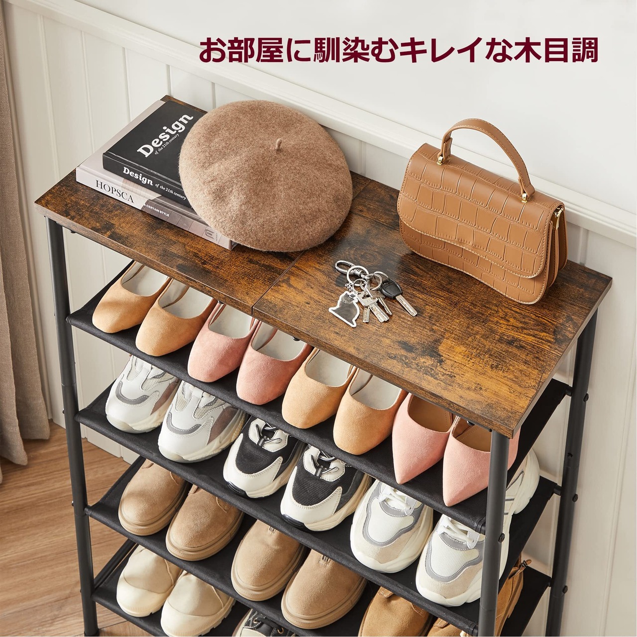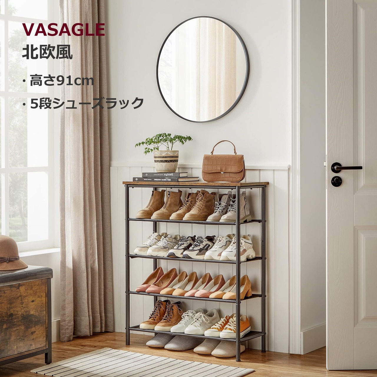 【数量限定】VASAGLE シューズラック 下駄箱 靴 収納 スリム 靴箱 省スペース 靴置き 靴収納 靴収納ラック おしゃれ 5段 大容量 木製 玄関収納 奥行30㎝ 高さ91cm ヴィンテージ 玄関 棚 通気性 ポリエステル布 LBS036B01 | ニコニコSHOP