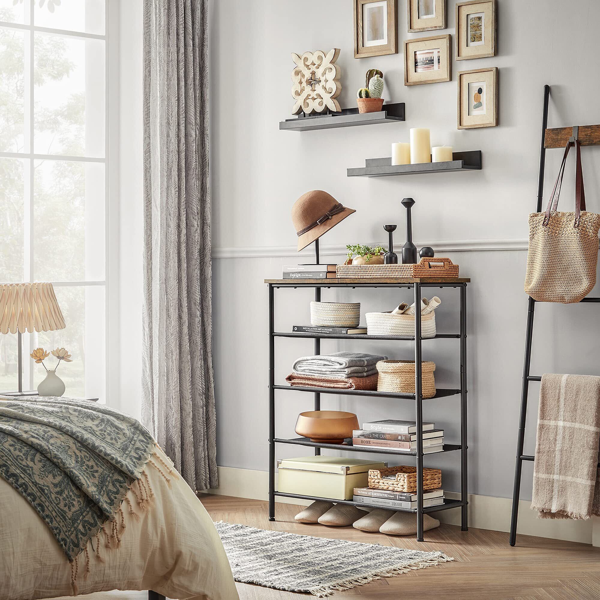 VASAGLE シューズラック 下駄箱 靴 収納 スリム 靴箱 省スペース 靴置き 靴収納 靴収納ラック おしゃれ 5段 大容量 木製 玄関収納 奥行30㎝ 高さ91cm ヴィンテージ 玄関 棚 通気性 ポリエステル布 LBS036B01